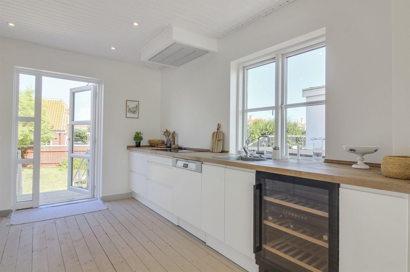 Køkkenet er udstyret med 1 køleskab. Der er 4 induktionskogeplader, varmluftovn, mikrobølgeovn samt opvaskemaskine.
