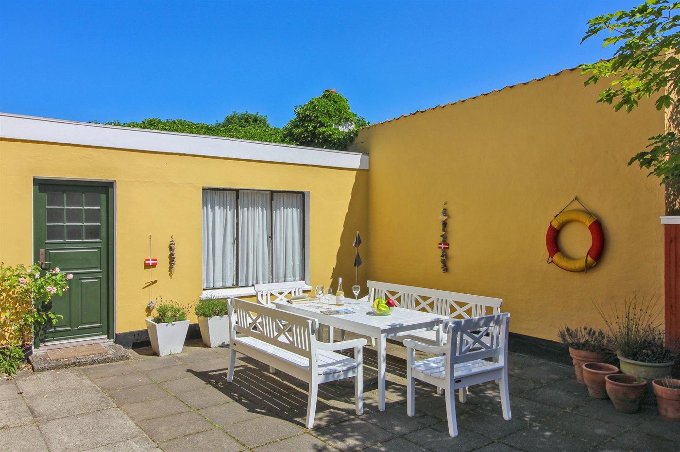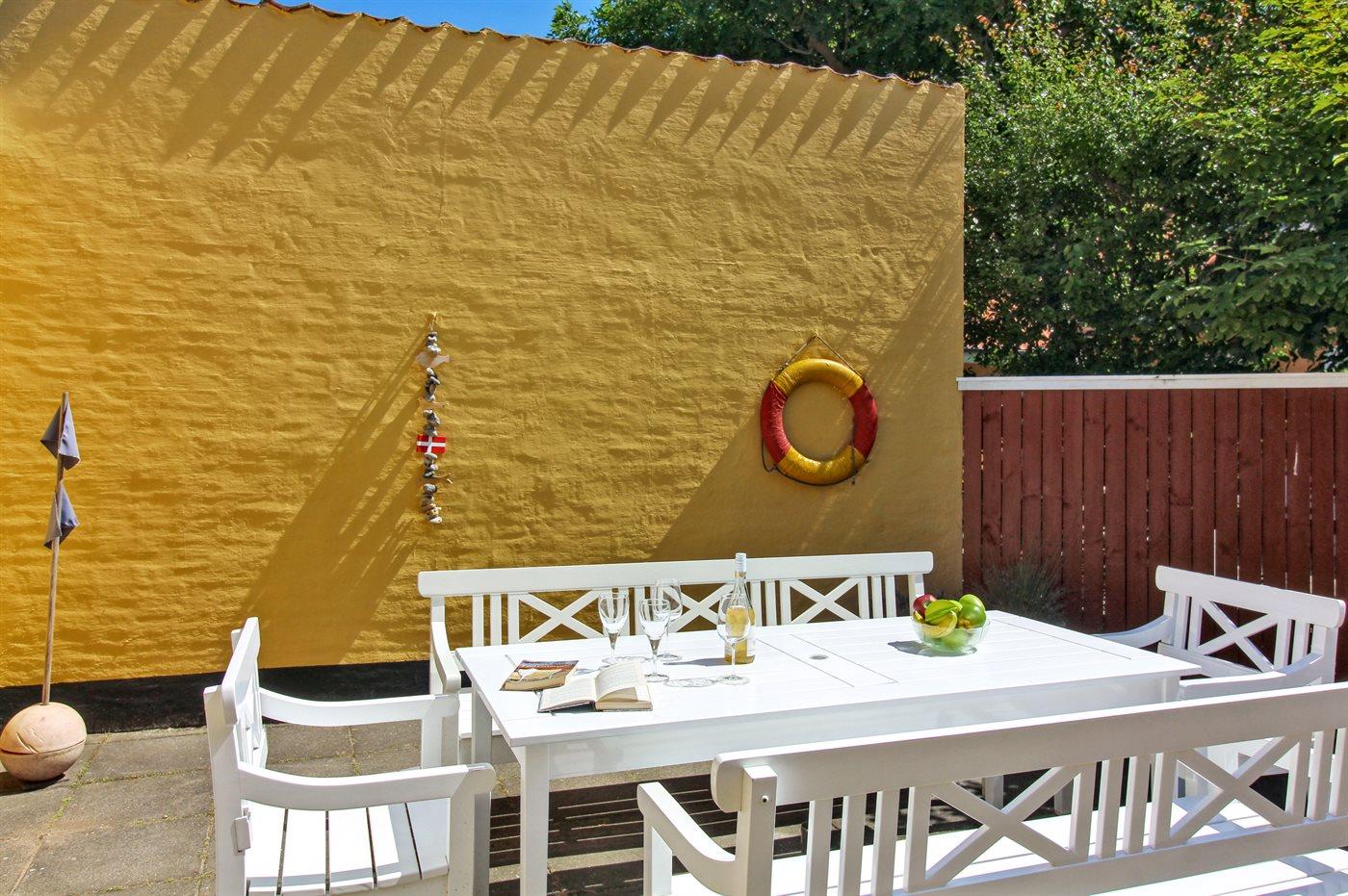Huset ligger på en ugenert grund med terrasse, hvor man kan nyde solen og måltider i det fri.
