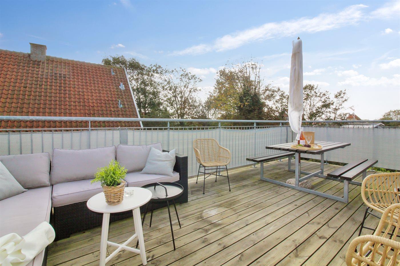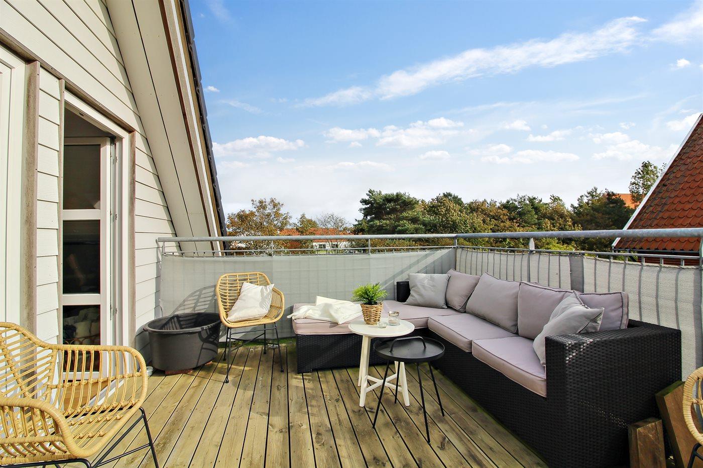 Til lejligheden hører en dejlig altan, hvor man tilbringe afslappende timer i det fri.
