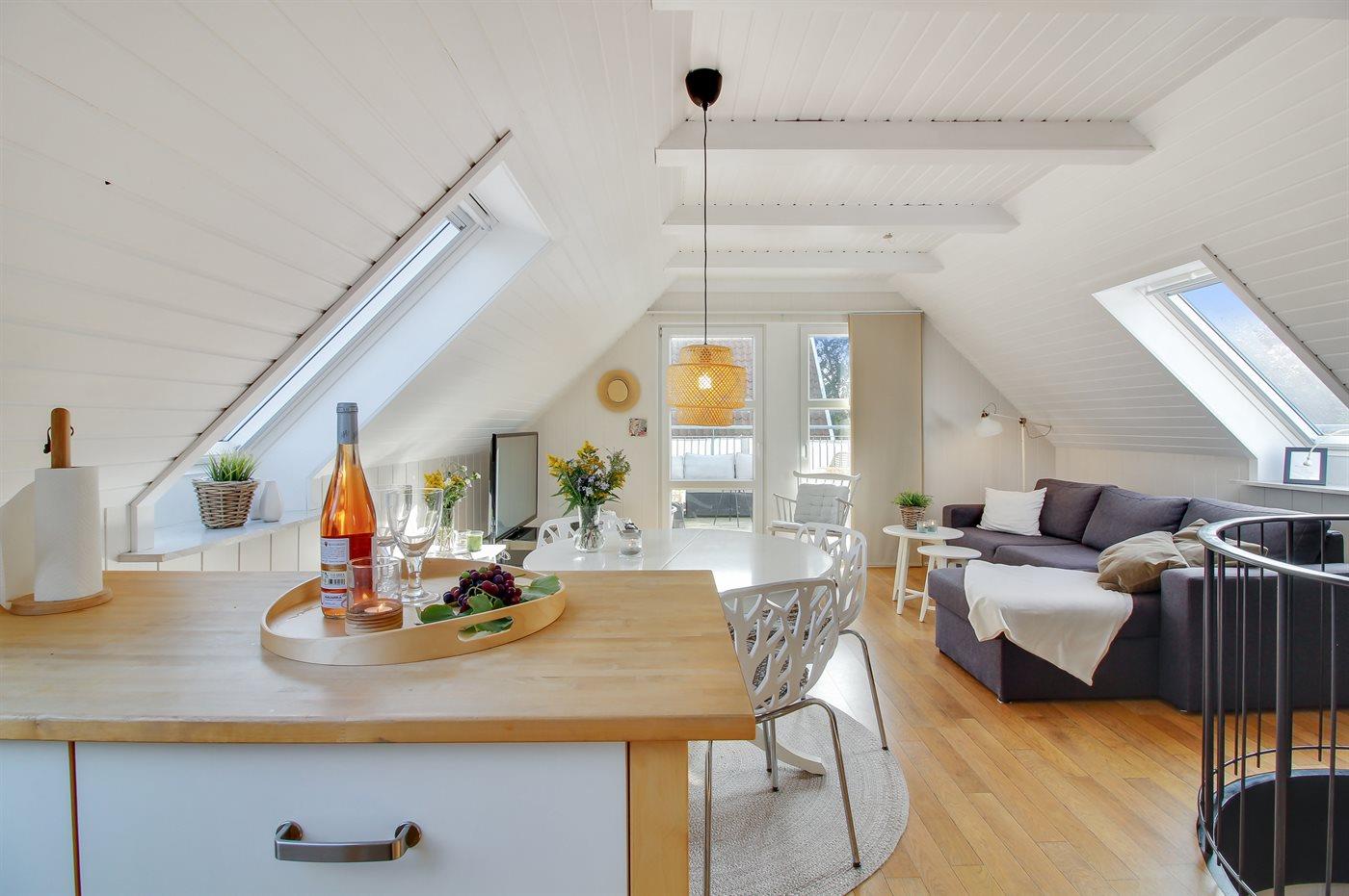 En hyggelig ferielejlighed på 1. sal – beliggende i Skagen Nordby med gåafstand til havn, centrum og ikke mindst den dejlige badestrand.