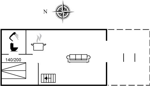 Der er i alt 1 soveværelse. Sovepladserne fordeler sig på: 2 sovepladser i dobbeltseng. 2 sovepladser i sovesofa (dobbelt). 2 af disse sovepladser befinder sig i stuen.