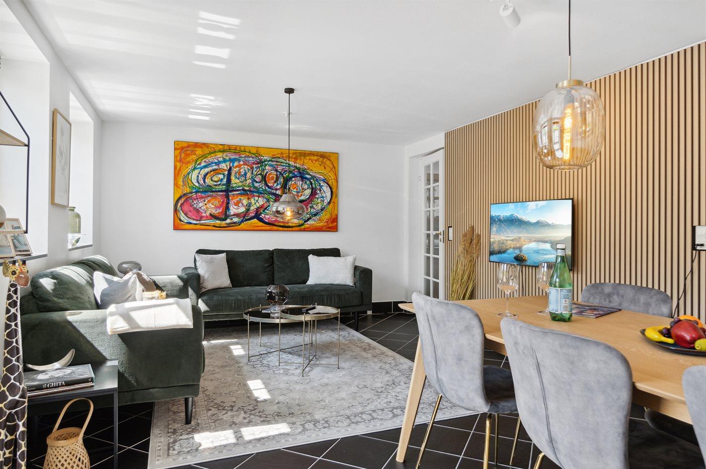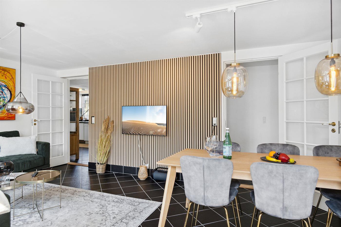 Lejligheden er smagfuldt indrettet med nyt interiør.