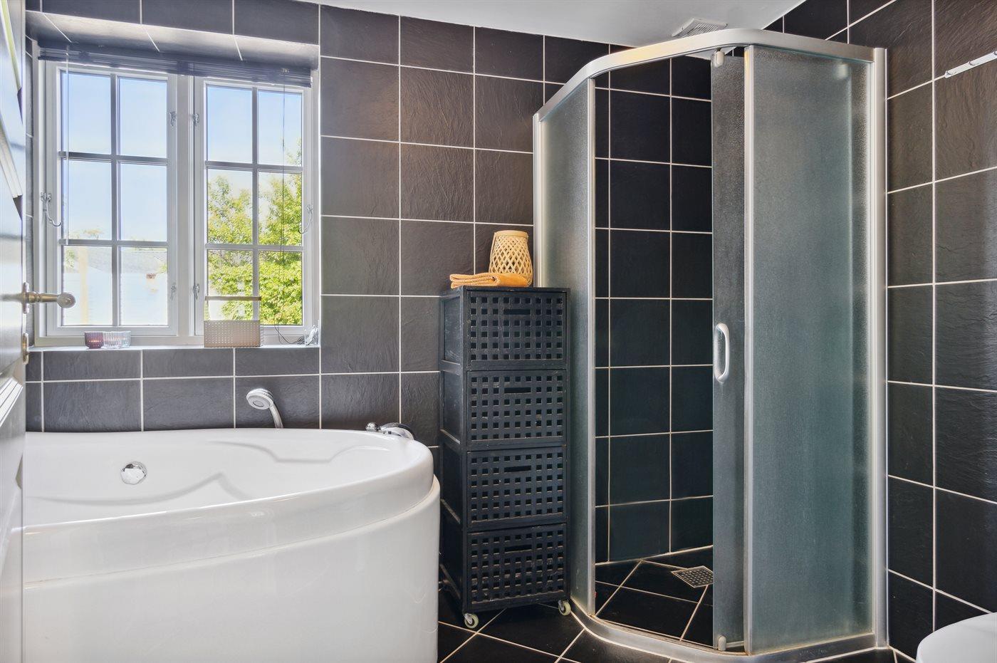 Der er 2 badeværelser med bruseniche og 2 toiletter. Der er gulvvarme på 2 badeværelser.
