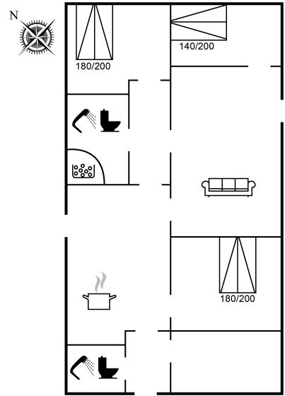 Der er i alt 3 soveværelser. Sovepladserne fordeler sig på: 6 sovepladser i dobbeltsenge. Der er gulvvarme i 3 af soveværelserne.