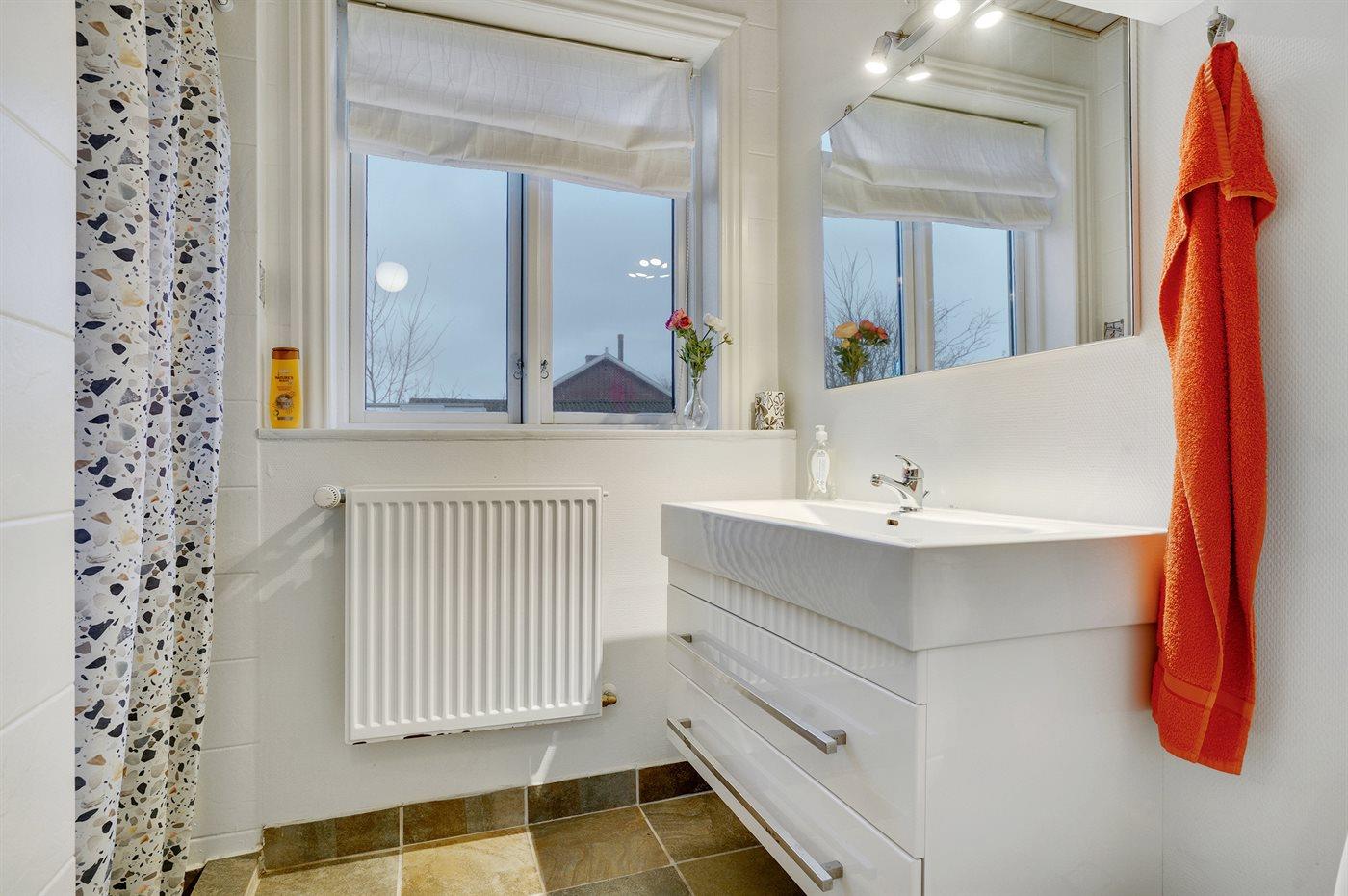 Der er 2 badeværelser med bruseniche og 2 toiletter. Der er gulvvarme på 2 badeværelser.
