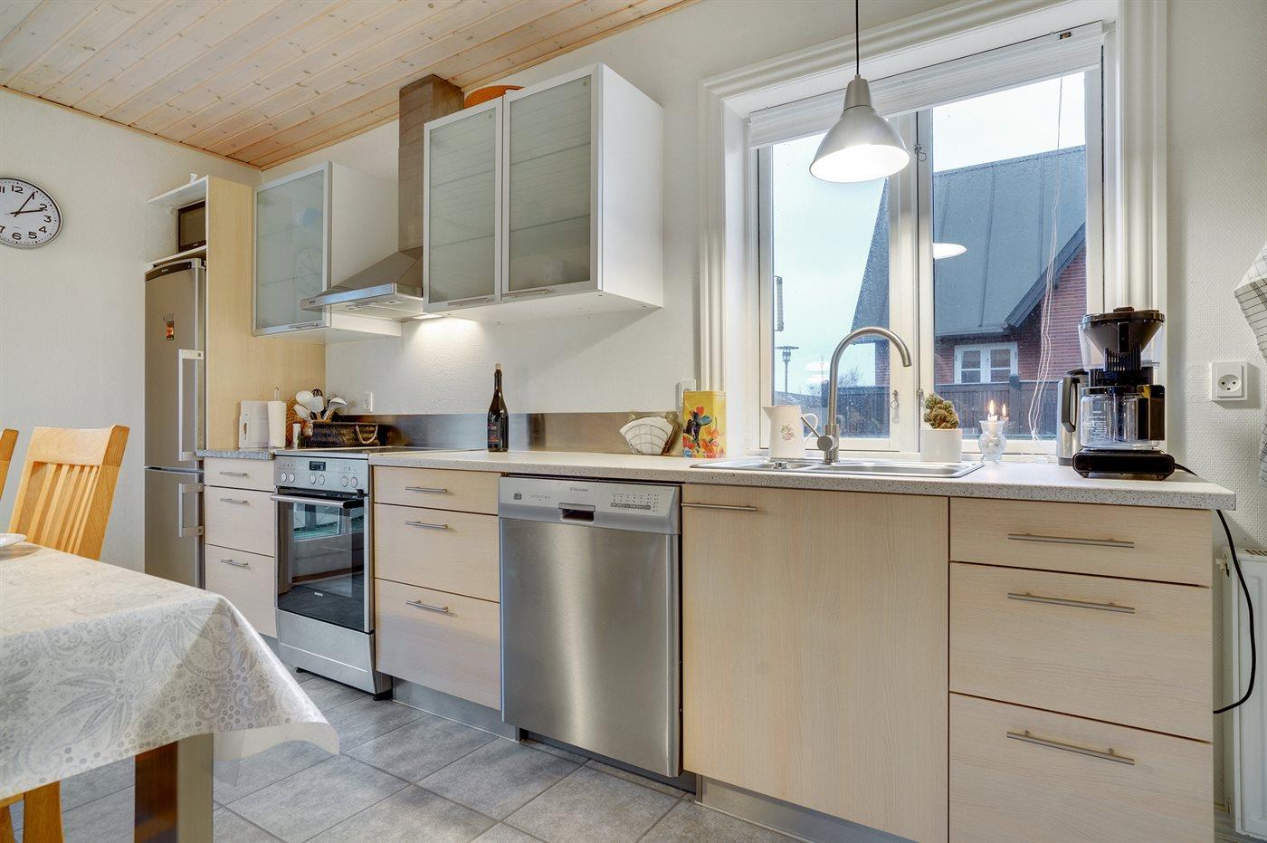 Køkkenet er udstyret med 1 køleskab. Der er 4 keramiske kogeplader, varmluftovn, mikrobølgeovn samt opvaskemaskine.
