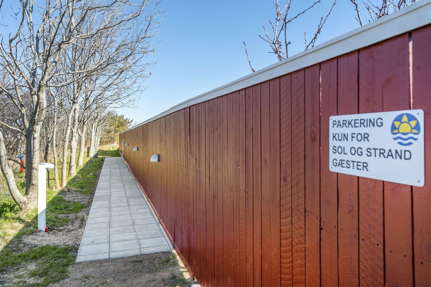 Ferieboligen er beliggende på en 110 m² stor naturgrund. Der er 800 m til havet. Nærmeste forretning er beliggende i en afstand af 500 m. Til ferieboligen hører 50 m² terrasseareal. Parkering ved ferieboligen.