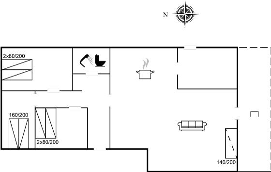 Der er i alt 3 soveværelser. Sovepladserne fordeler sig på: 2 sovepladser i dobbeltseng. 4 sovepladser i enkeltsenge. 1 soveplads i sovesofa (enkelt).