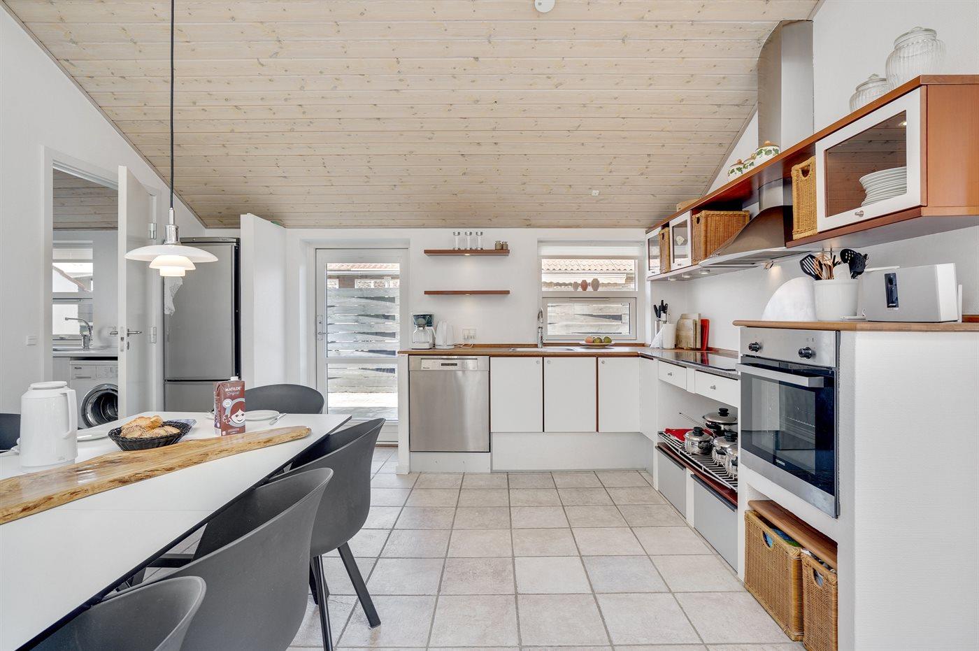 Køkkenet er udstyret med 2 køleskabe. Der er 4 induktionskogeplader, varmluftovn samt opvaskemaskine.