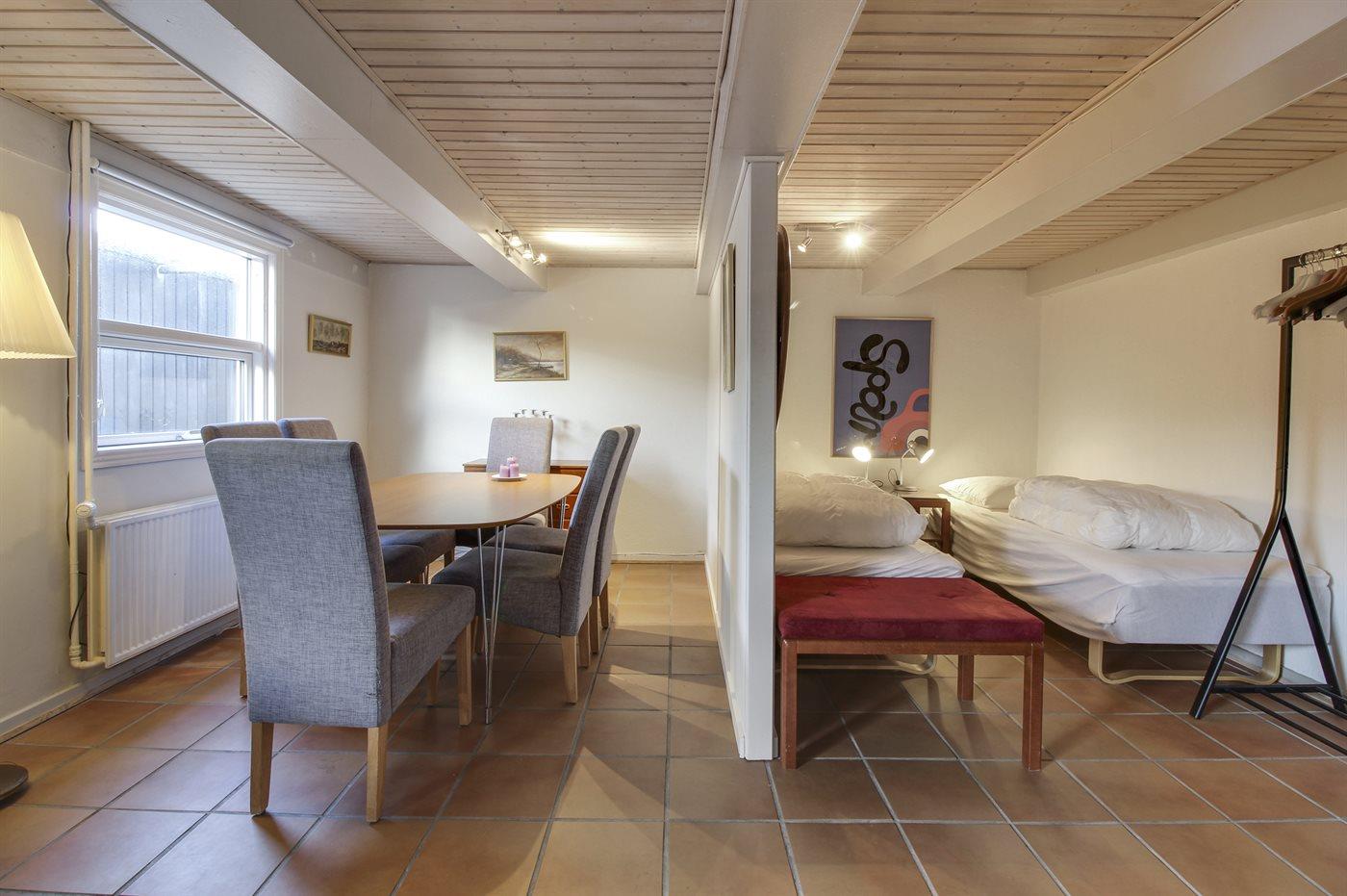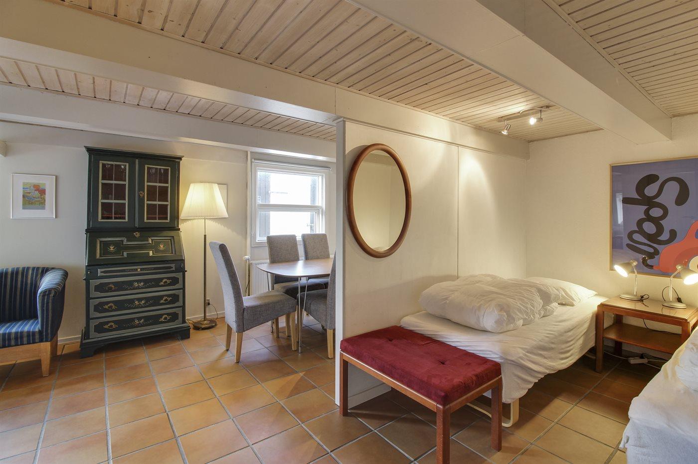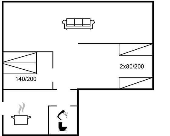 Der er i alt 2 soveværelser. Sovepladserne fordeler sig på: 2 sovepladser i dobbeltseng. 2 sovepladser i enkeltsenge. 2 af disse sovepladser befinder sig i stuen.