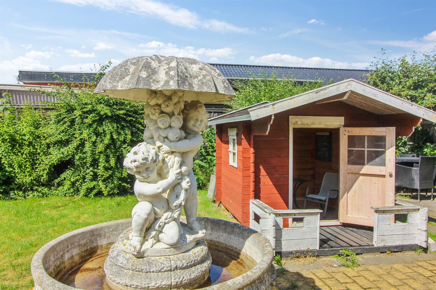Der findes et fælles udenomsareal med bl.a. orangeri og fælles grill. Der hører privat parkeringsplads til hver lejlighed.