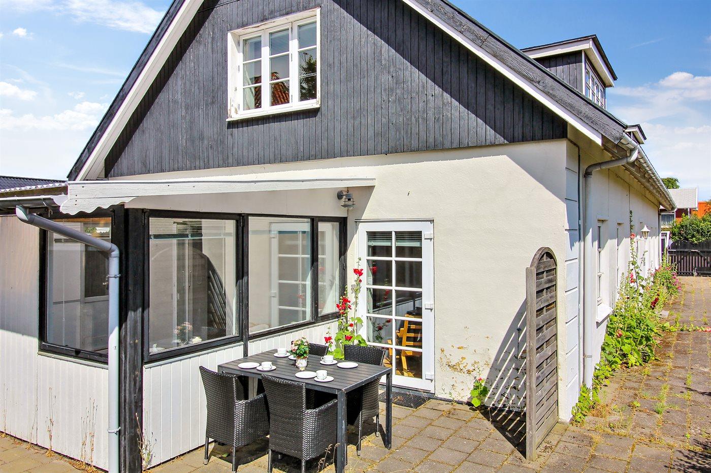 Hyggelig og moderne 1. sals ferielejlighed centralt i Skagen med fælles orangeri og grill.