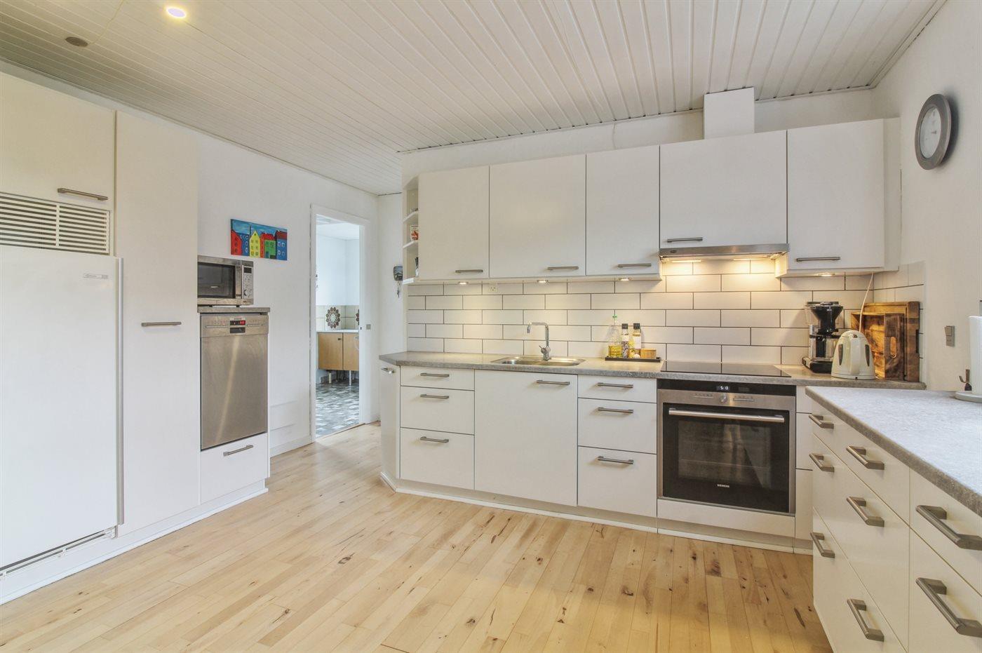 Køkkenet er udstyret med 1 køleskab. Der er 4 keramiske kogeplader, varmluftovn, mikrobølgeovn samt opvaskemaskine.