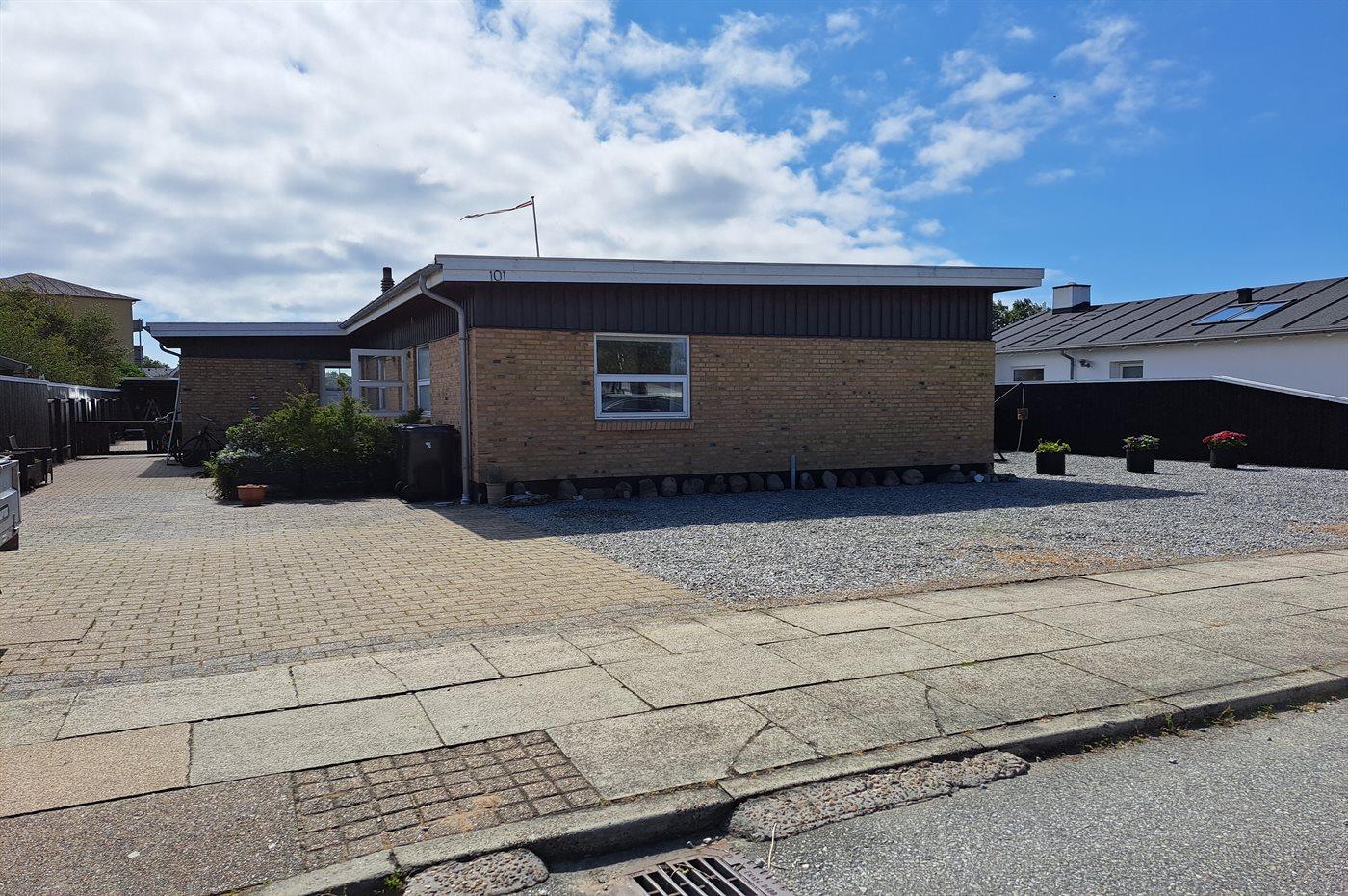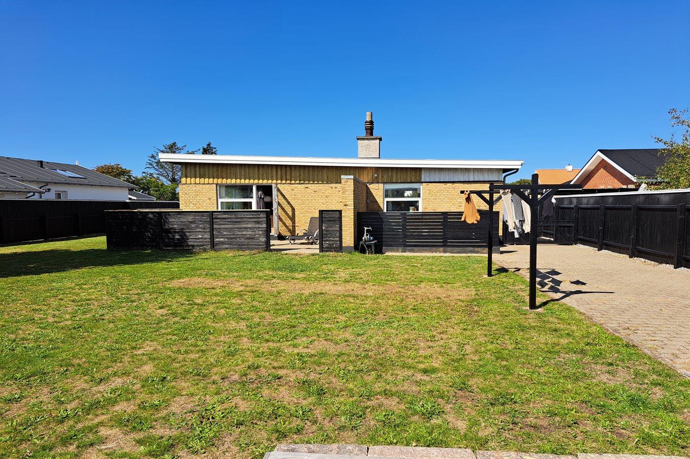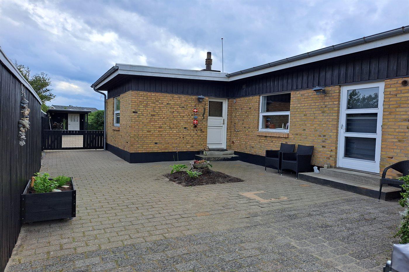 Beskrivelse Velbeliggende byhus i Skagen Nordby med gåafstand til både centrum, havn og strand. Grunden er ugeneret og lukket til glæde for både børn og hund.