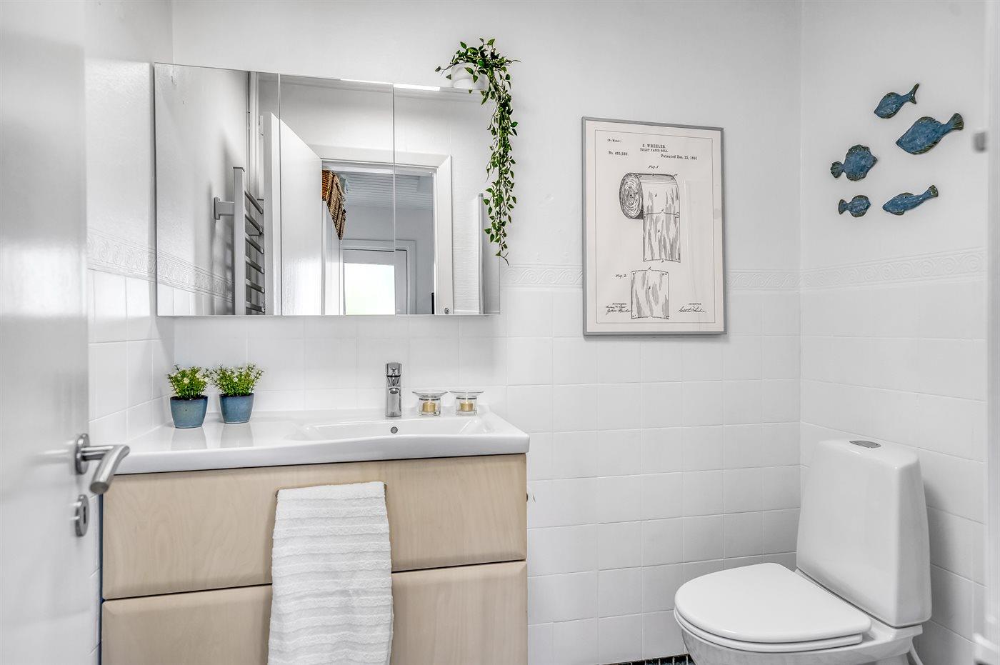 Der er 1 badeværelse med gulvvarme, bruseniche og toilet. Desuden findes der et gæstetoilet.