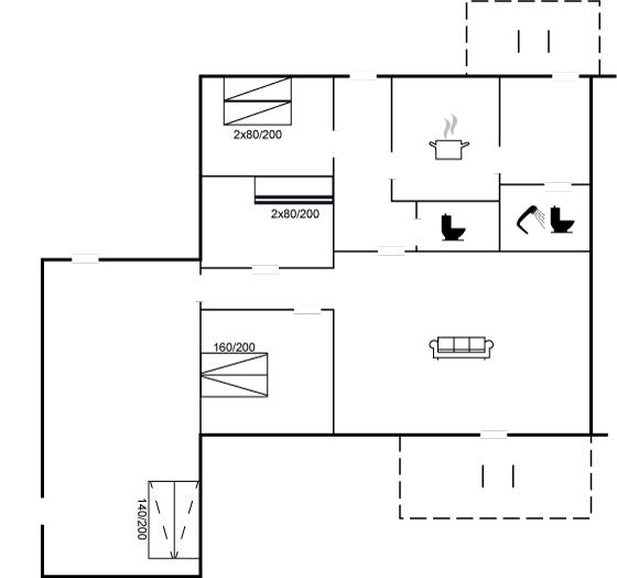 Huset er indrettet med 3 soveværelser; 1 med dobbeltseng og udtræksseng til ét barn, 1 med køjeseng og 1 med dobbeltseng, som kan skubbes sammen til en enkeltseng. Desuden findes der en dobbelt sovesofa i aktivitetsrummet. Til de helt små er der barneseng, barnestol, puslepude og badekar til rådighed. Desuden findes der 2 juniorstole til mindre børn.