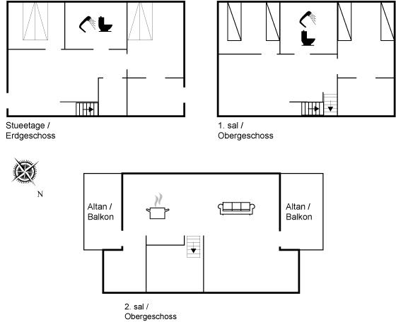 Der er i alt 4 soveværelser. Sovepladserne fordeler sig på: 4 sovepladser i dobbeltsenge. 4 sovepladser i enkeltsenge. Derudover er der 1 stk. barneseng.