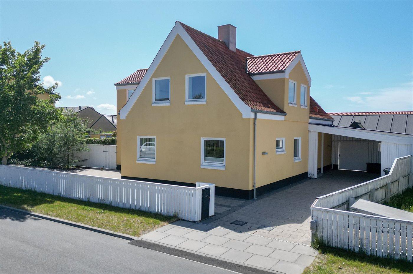 Charmerende gult Skagen-hus med anneks, tæt på strand og by, perfekt til familier og hunde.