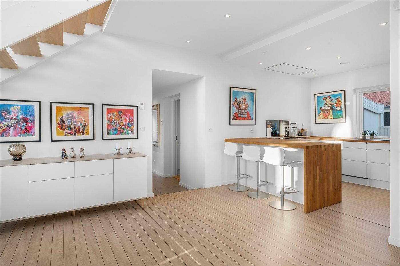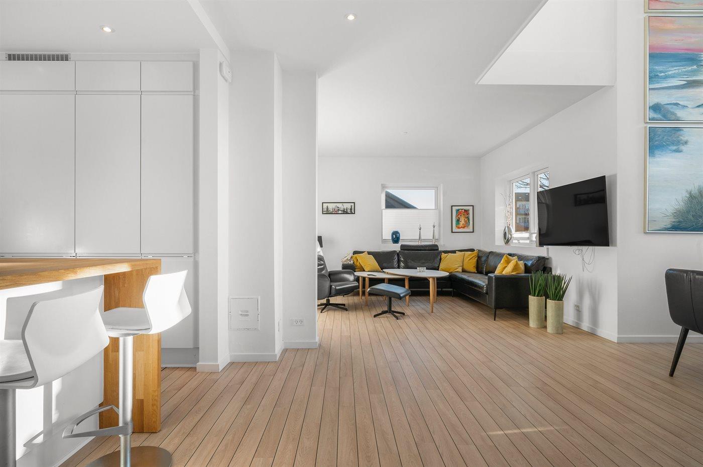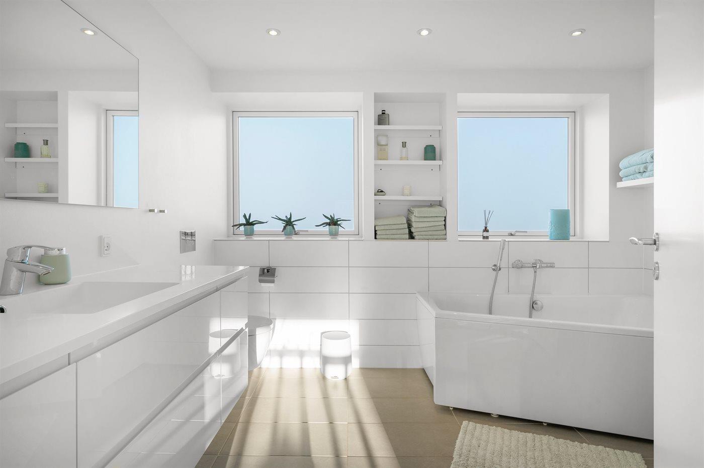 Der er 1 badeværelse med gulvvarme, bruseniche samt badekar og 2 badeværelser med gulvvarme og bruseniche.