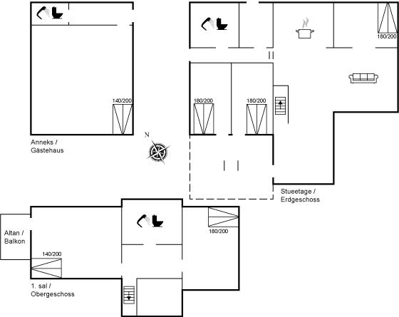 Der er i alt 6 soveværelser. Sovepladserne fordeler sig på: 12 sovepladser i dobbeltsenge. 2 af disse sovepladser befinder sig i et anneks.