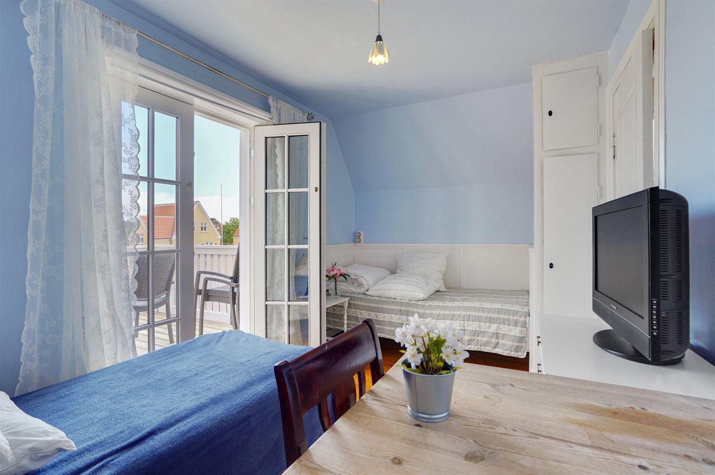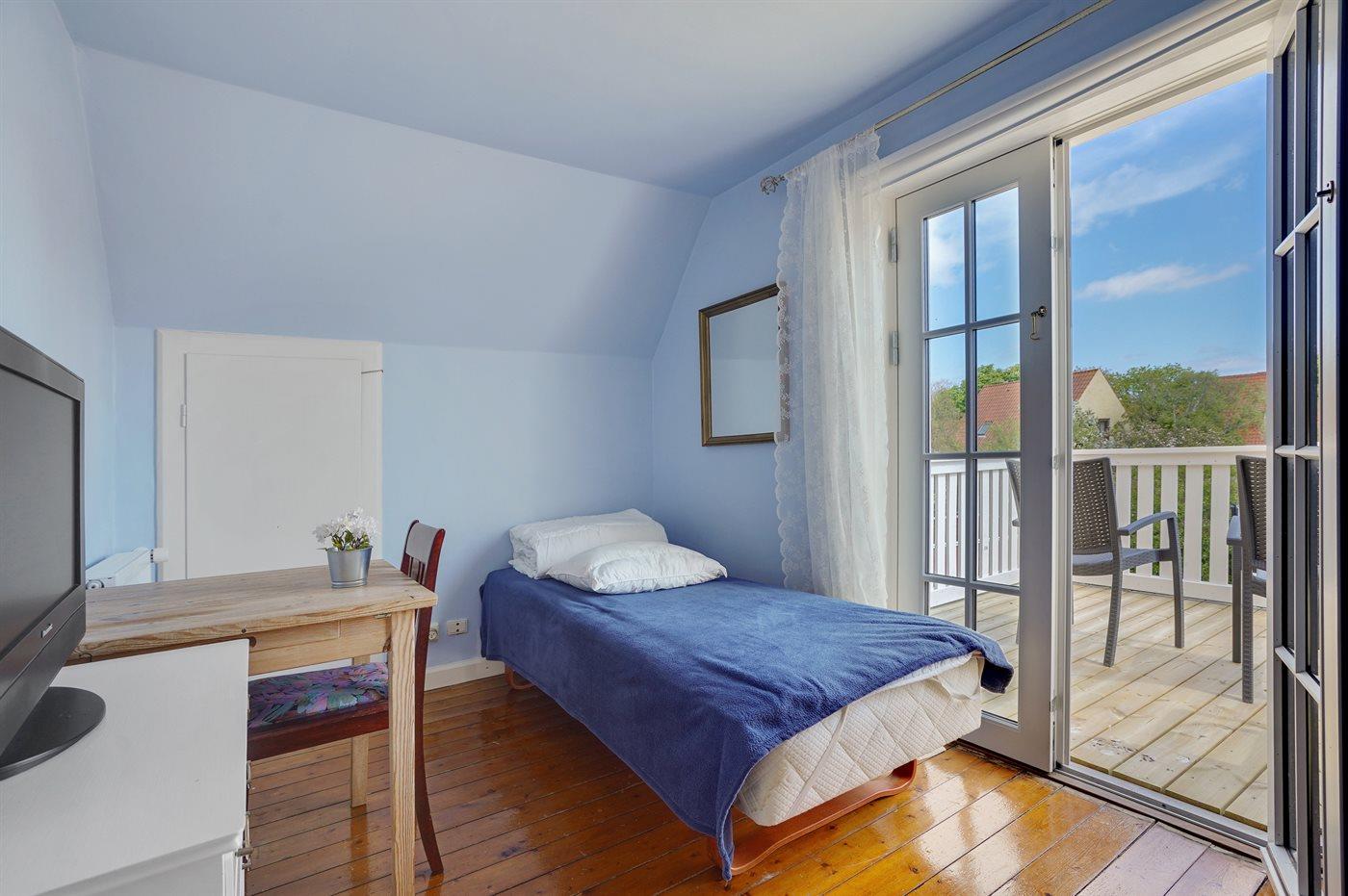 Der er i alt 2 soveværelser. Sovepladserne fordeler sig på: 4 sovepladser i dobbeltsenge. 1 soveplads i alkove. Derudover er der 1 stk. barneseng.
