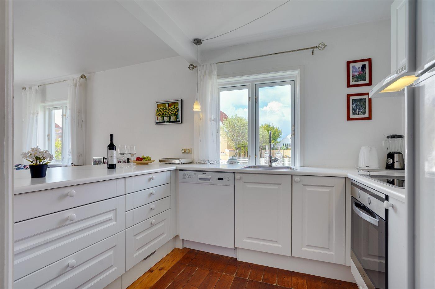 Køkkenet er udstyret med 1 køleskab. Der er 4 induktionskogeplader, varmluftovn samt opvaskemaskine.