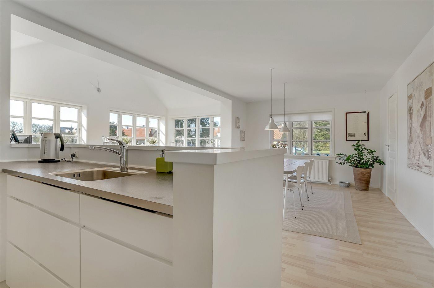 Køkkenet er udstyret med 1 køleskab. Der er 4 induktionskogeplader, varmluftovn, mikrobølgeovn samt opvaskemaskine.