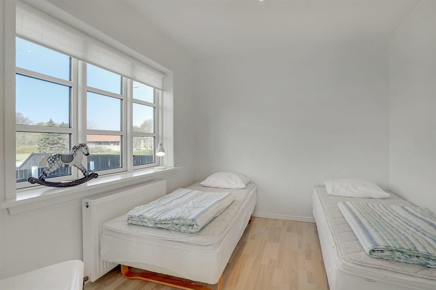 Der er i alt 4 soveværelser. Sovepladserne fordeler sig på: 4 sovepladser i dobbeltsenge. 4 sovepladser i enkeltsenge. Derudover er der 1 stk. barneseng.