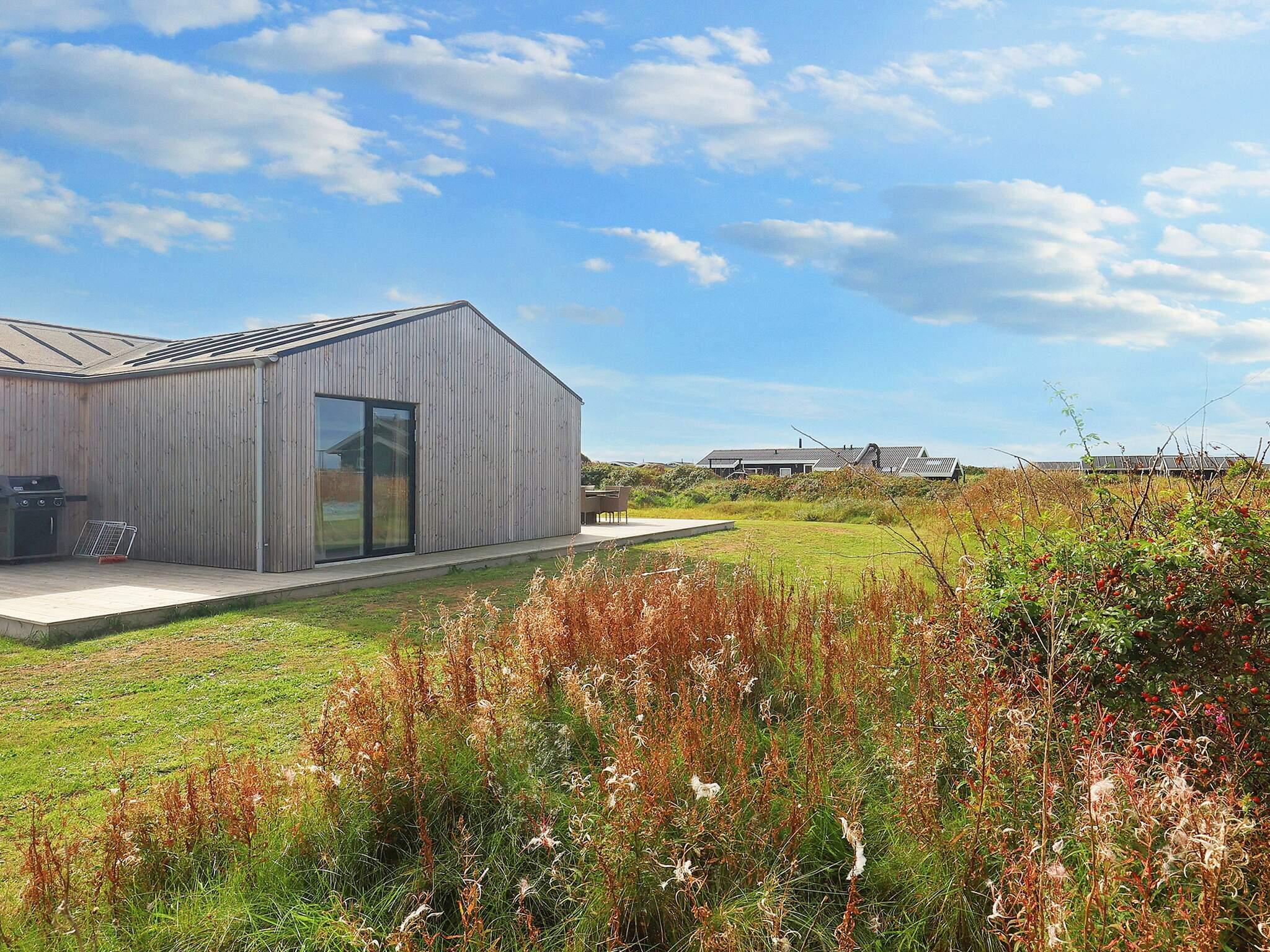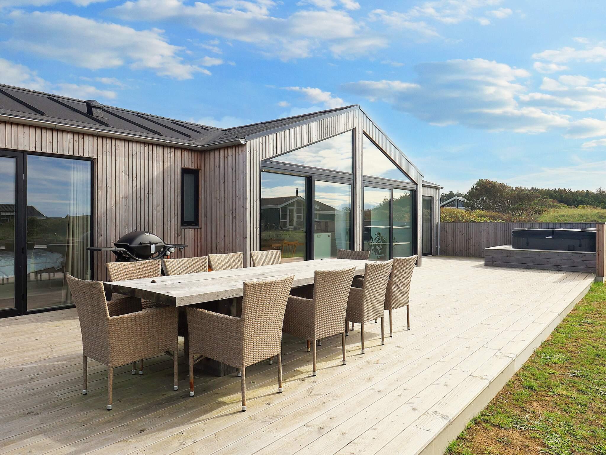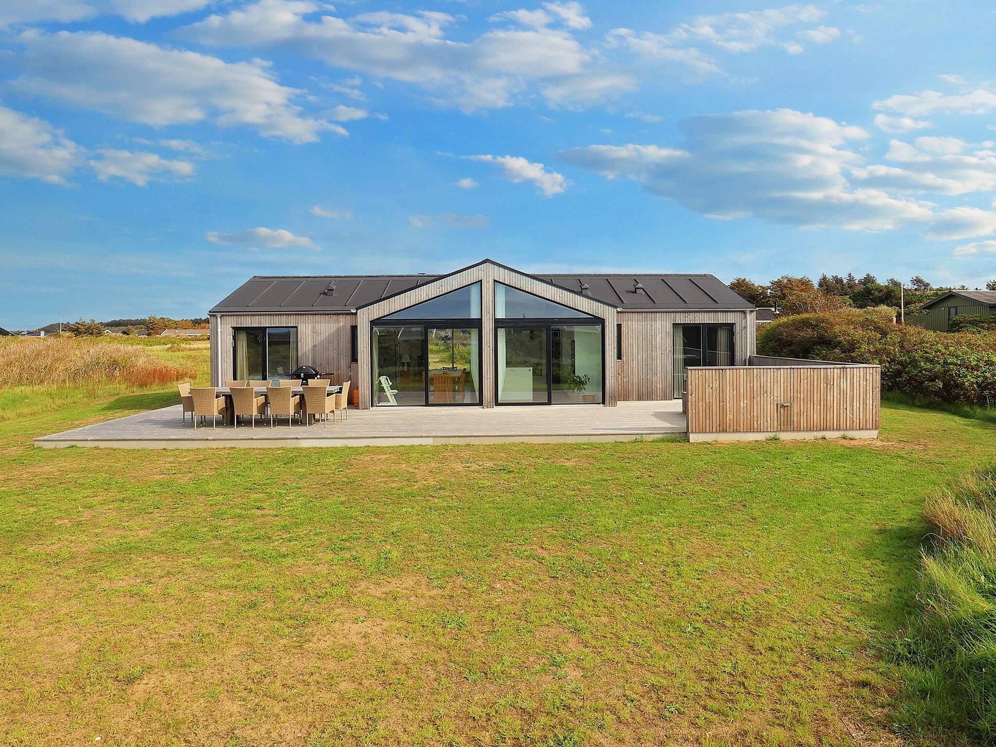 Moderne sommerhus fra 2021 i kvalitetsmaterialer med udendørs spabad og smuk beliggenhed med udsigt til Vesterhavet. Et hus med al tænkelig komfort for gæsten, som ikke går på kompromis med hverken smag eller kvalitet. I træder ind i sommerhusets entré, hvorfra der er adgang til husets hjerte, nemlig det veludstyrede køkken og stue, som ligger i åben forbindelse. Overalt er et skønt lysindfald fra de store panoramavinduer, som giver en fantastisk udsigt ud over det naturskønne sommerhusområde med Vesterhavet i baggrunden. Der er fire gode soveværelser samt to skønne badeværelser. Huset ligger på en flot naturgrund meget tæt på den skønne og bilfrie badestrand. Udsigten kan bestemt også nydes, når I sidder ude i det fri. Hele vejen rundt om huset er der terrasser, så solen kan nydes hele dagen. Ved den sydvendte terrasse finder i det store udendørs spabad. Udlejes ikke til ungdomsgrupper.