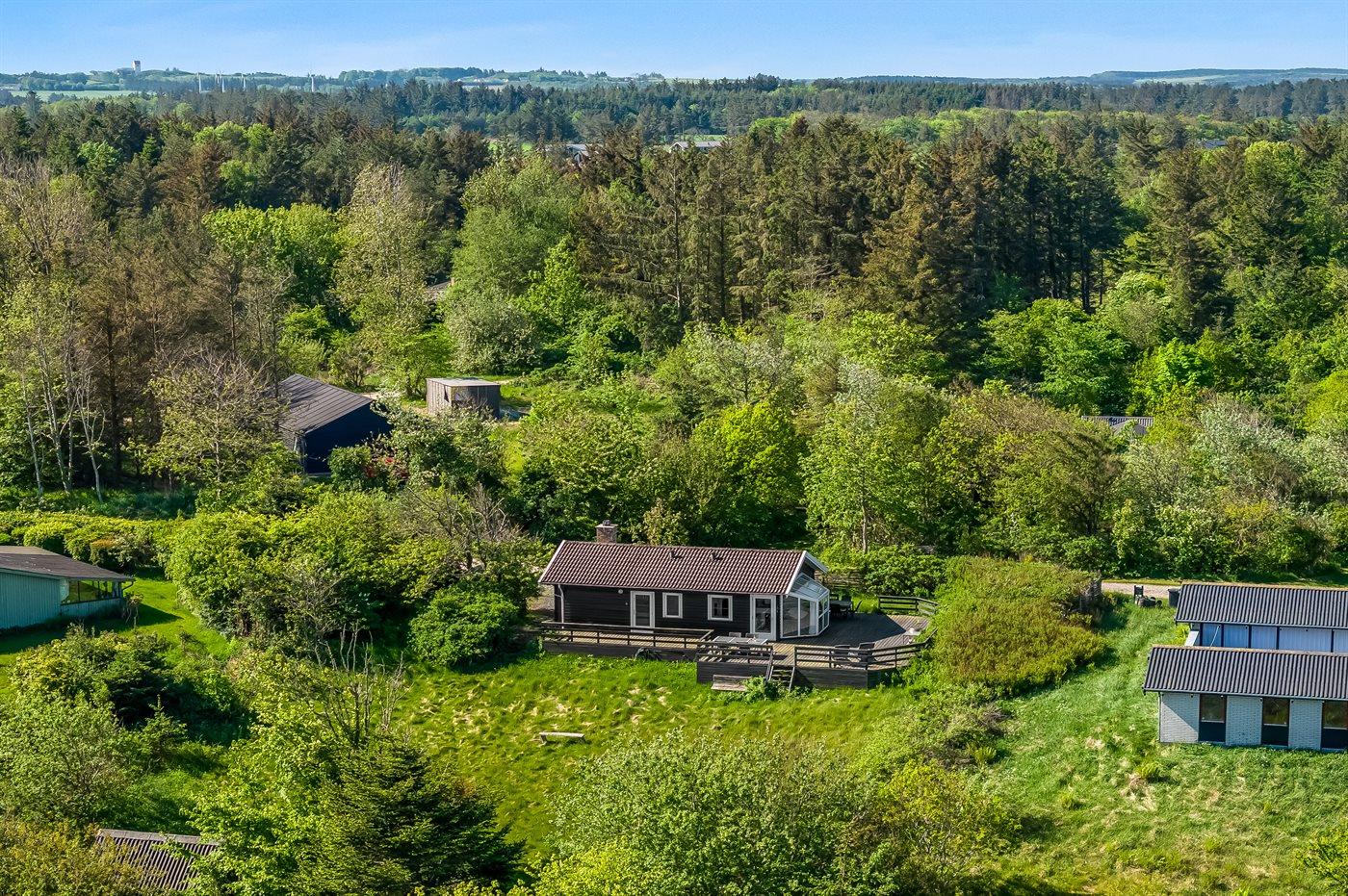 Ferieboligen er beliggende på en 2600 m² stor naturgrund. Der er 932 m til havet. Nærmeste forretning er beliggende i en afstand af 500 m. Til ferieboligen hører 60 m² terrasseareal. Der er redskabsrum. Parkering ved ferieboligen.