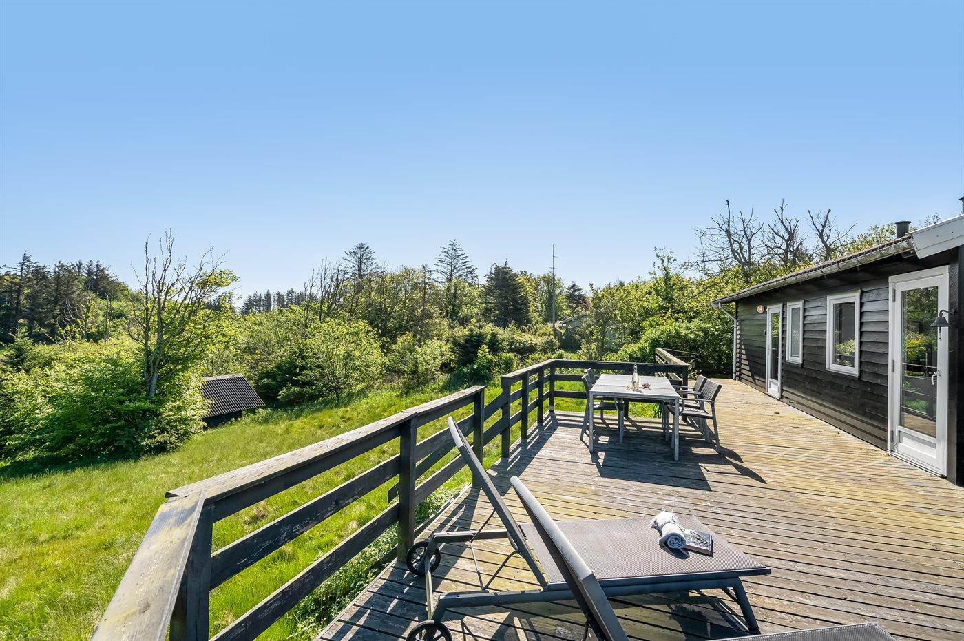 Højt beliggende med udsigt til havet og det omkringliggende naturområde fra såvel hus som grund ligger dette pragtfulde sommerhus på en kuperet grund, på en blind vej, nær dejlig badestrand, havet samt feriecenteret Skallerup Seaside Resort, der byder på et væld af aktiviteter for hele familien. Til huset hører en skøn terrasse, hvorfra udsigten over havet og de forbipasserende færger og skibe kan nydes.