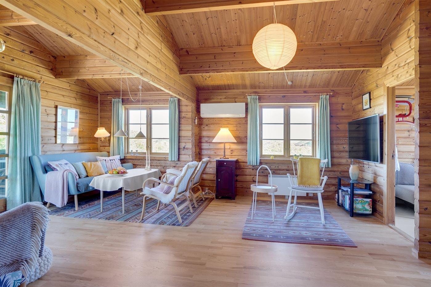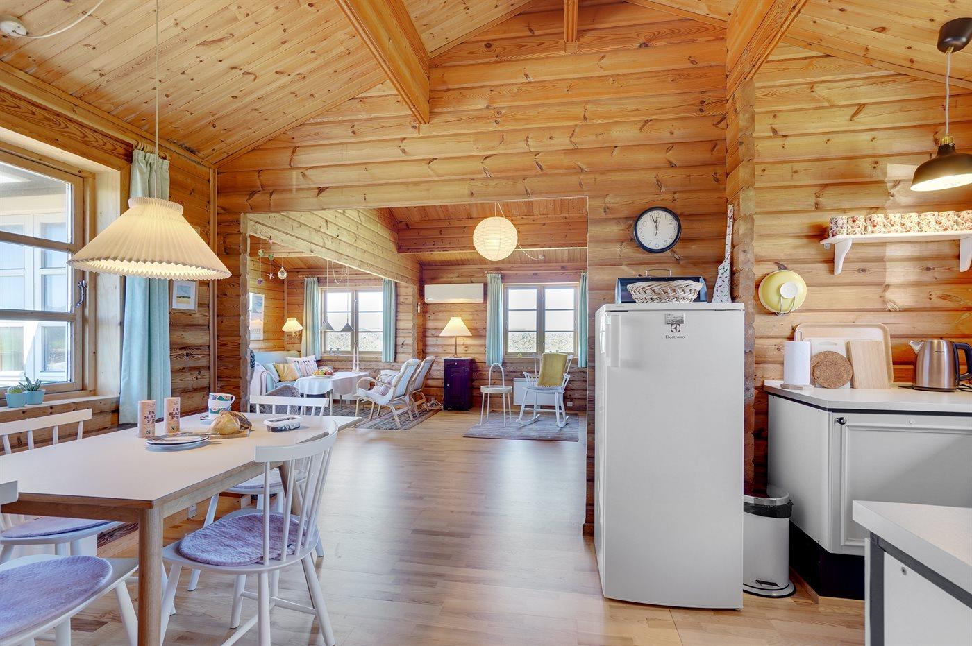 Rigtig hyggeligt og rustikt bjælkehus med god beliggenhed på stor grund i naturskønt område. Området giver gode muligheder for dejlige vandreture, både inde i landet, men også ved havet. Til huset er der en skøn terrasse, der gør det muligt at nyde solen, når den kigger frem.