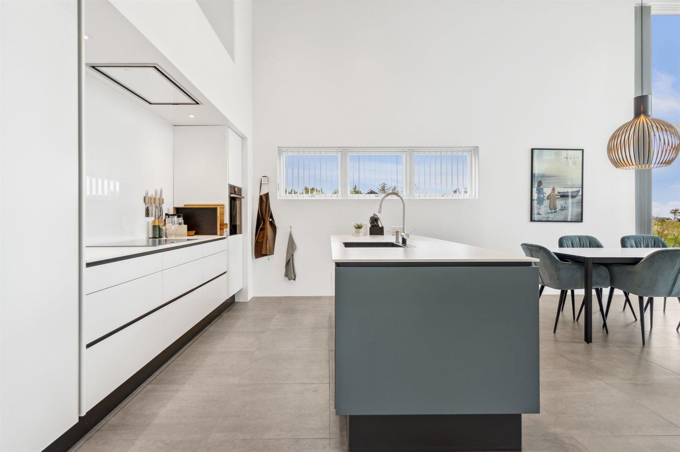 Køkkenet er udstyret med 1 amerikansk køleskab med isterningmaskine og integreret vinkøleskab. Der er 4 induktionskogeplader, varmluftovn, mikrobølgeovn samt opvaskemaskine.