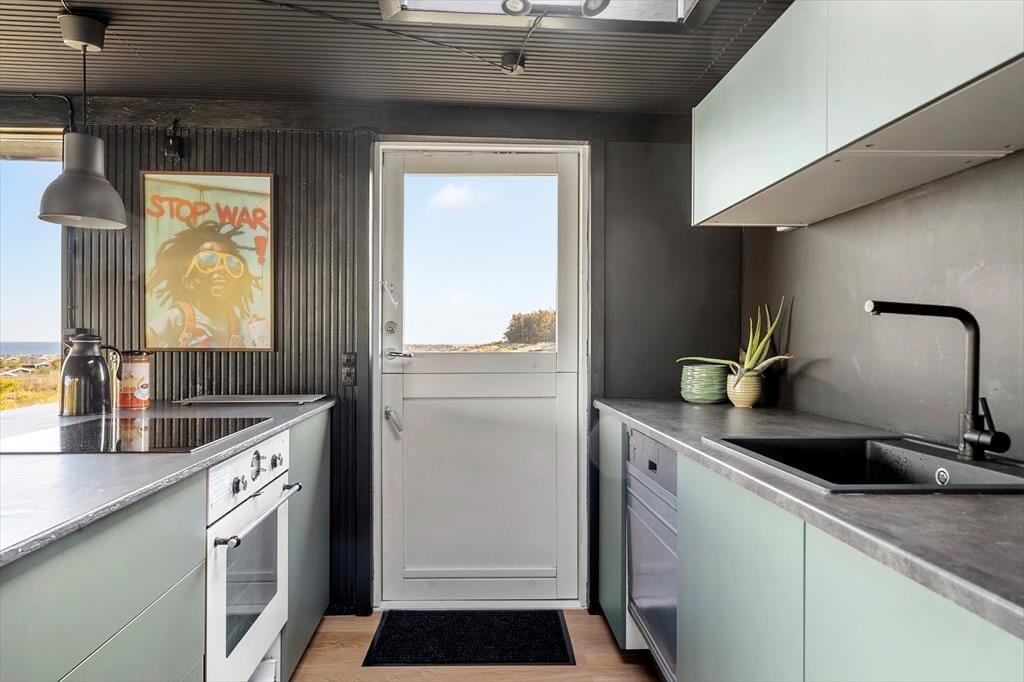 Sommerhus i Skallerup Klit, Nordjylland, med plads til 4 voksne og 2 husdyr. Der er en hyggelig indretning med bl.a. brændeovn, og du finder desuden vaskemaskine og opvaskemaskine i boligen.