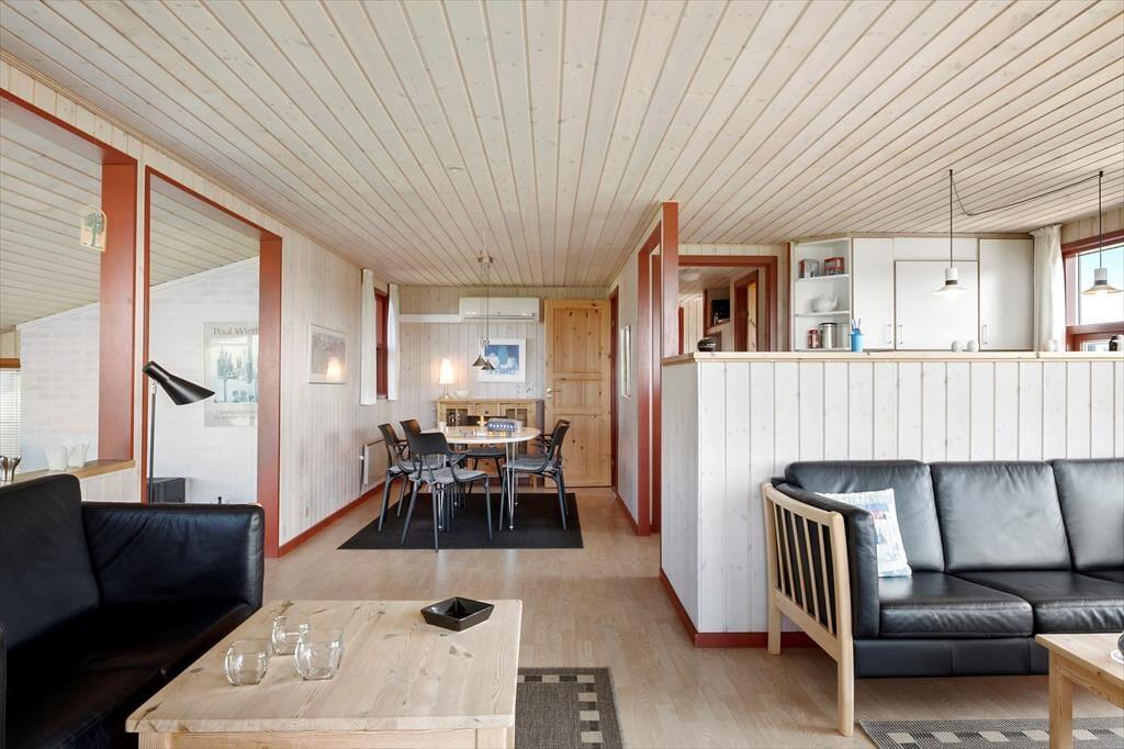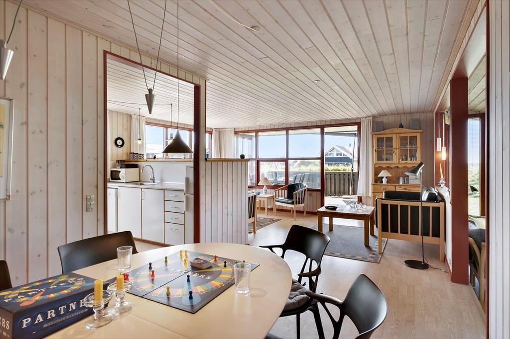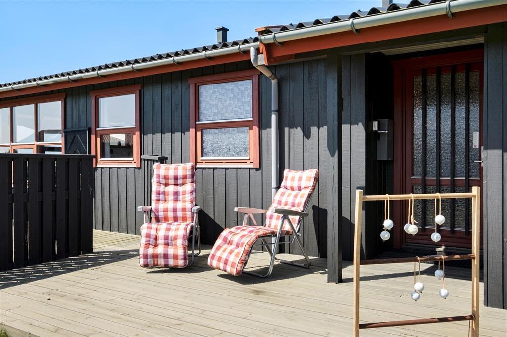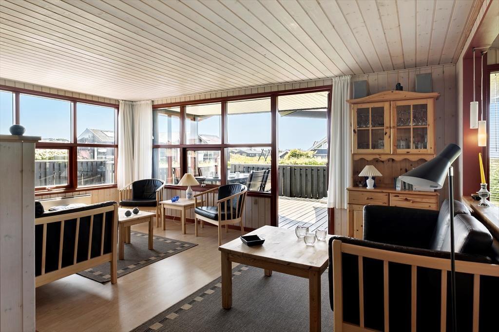 Dette velholdte sommerhus ligger så tæt på stranden, at I efter to minutters gang står i vandkanten – og så kan I endda også nyde udsigten til Vesterhavet derhjemme inden døre.