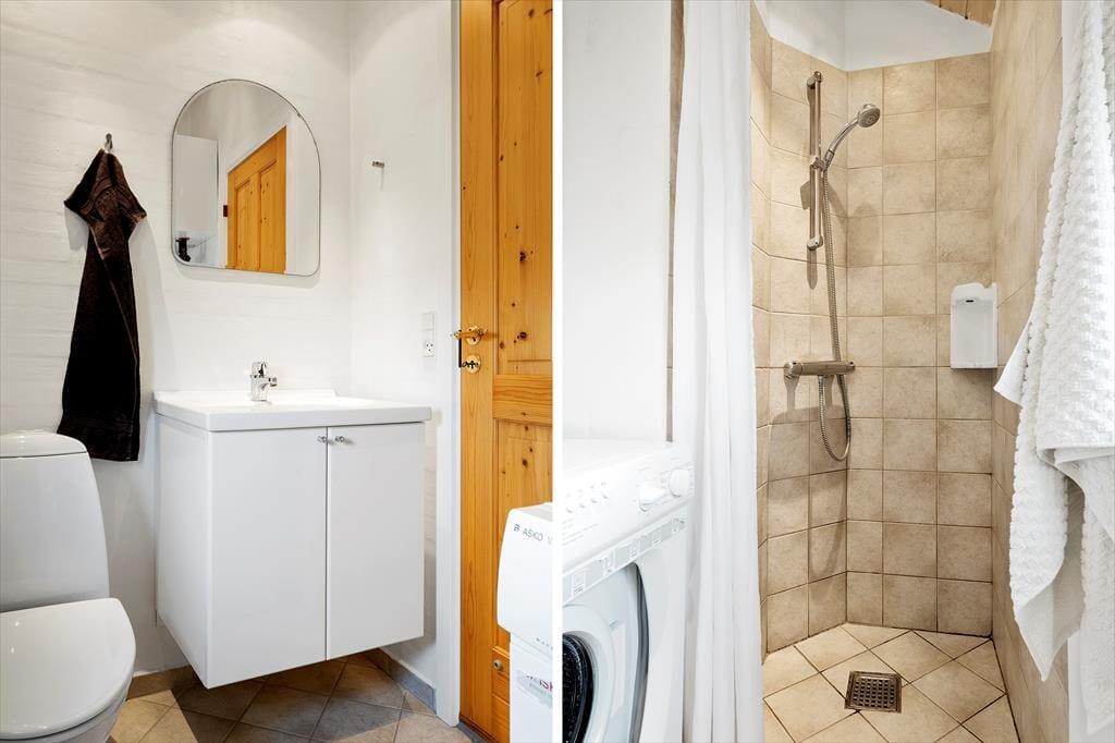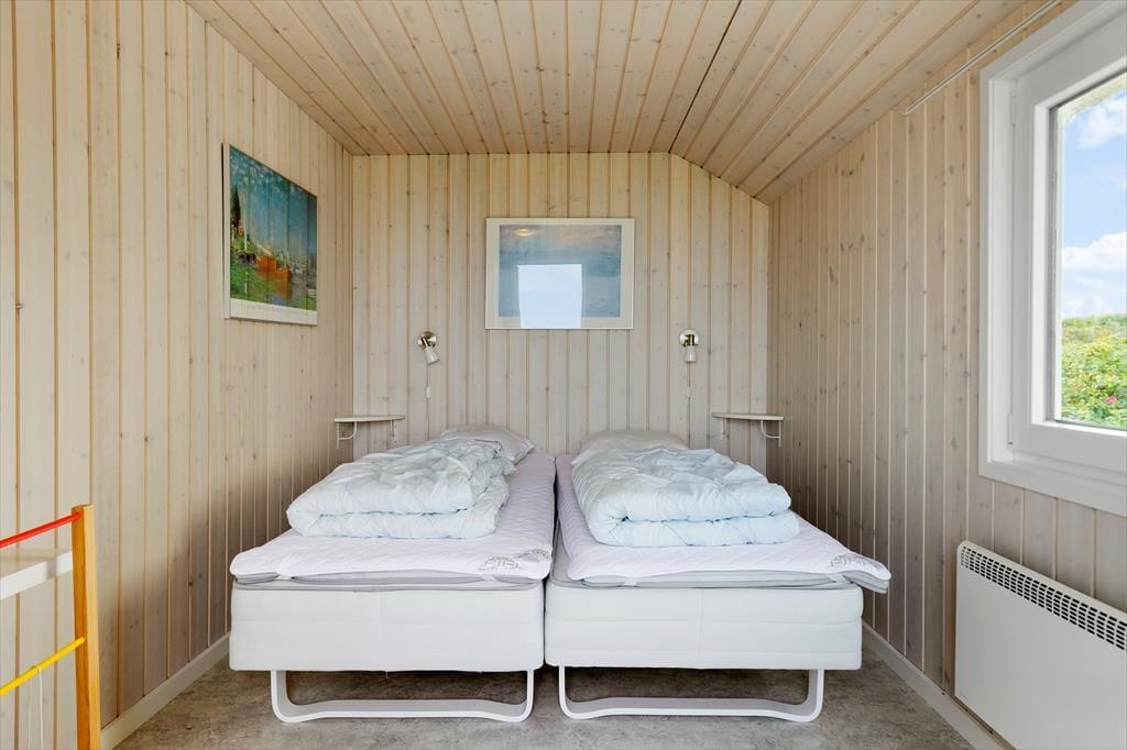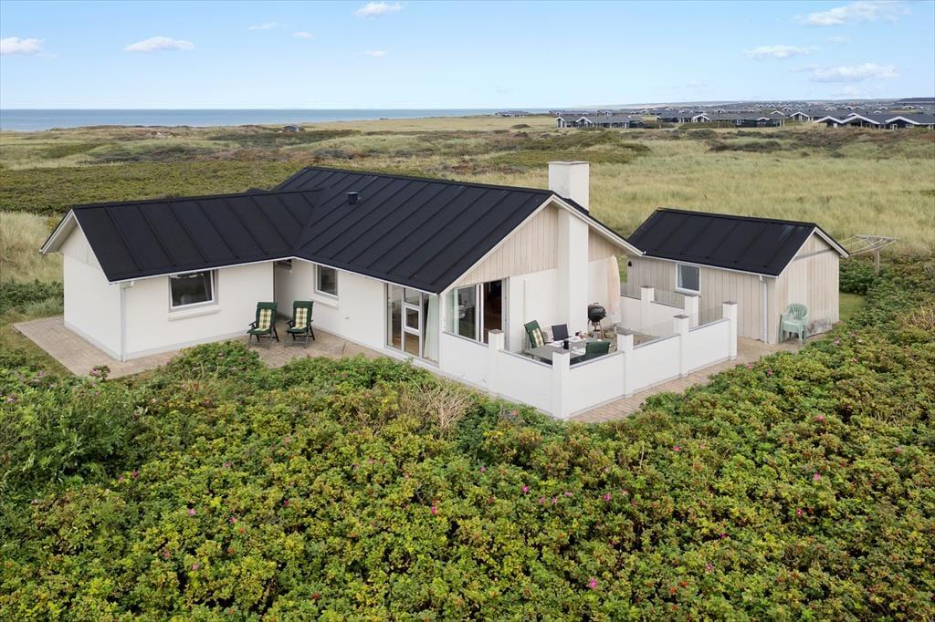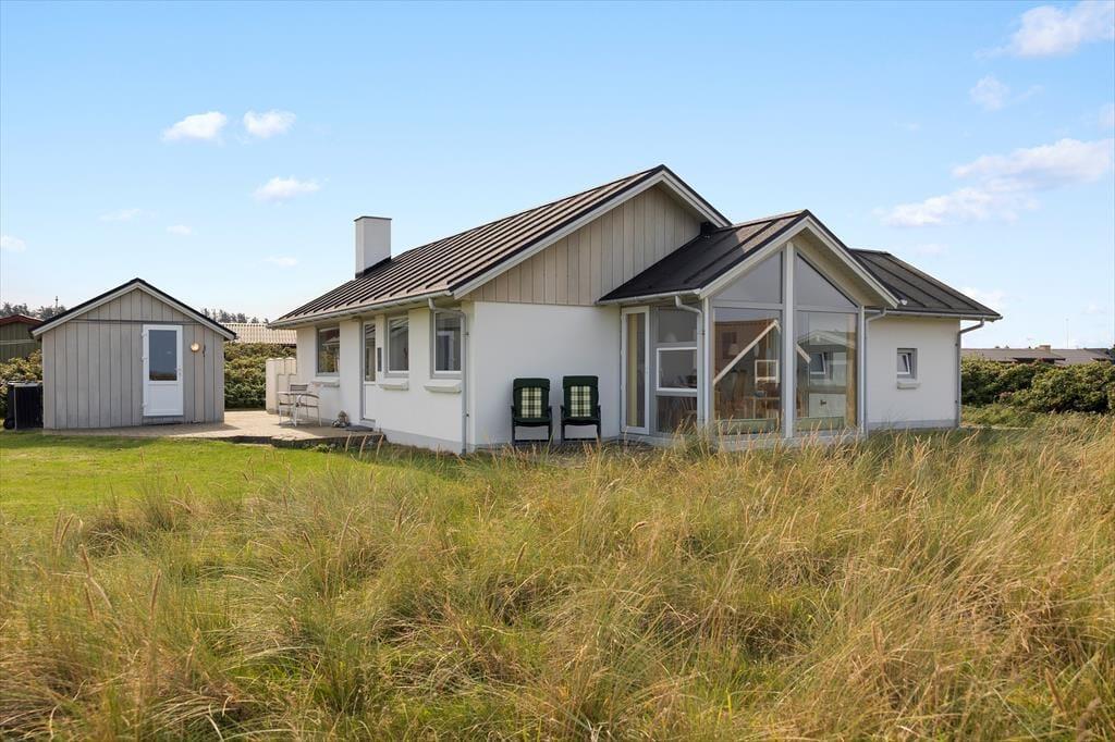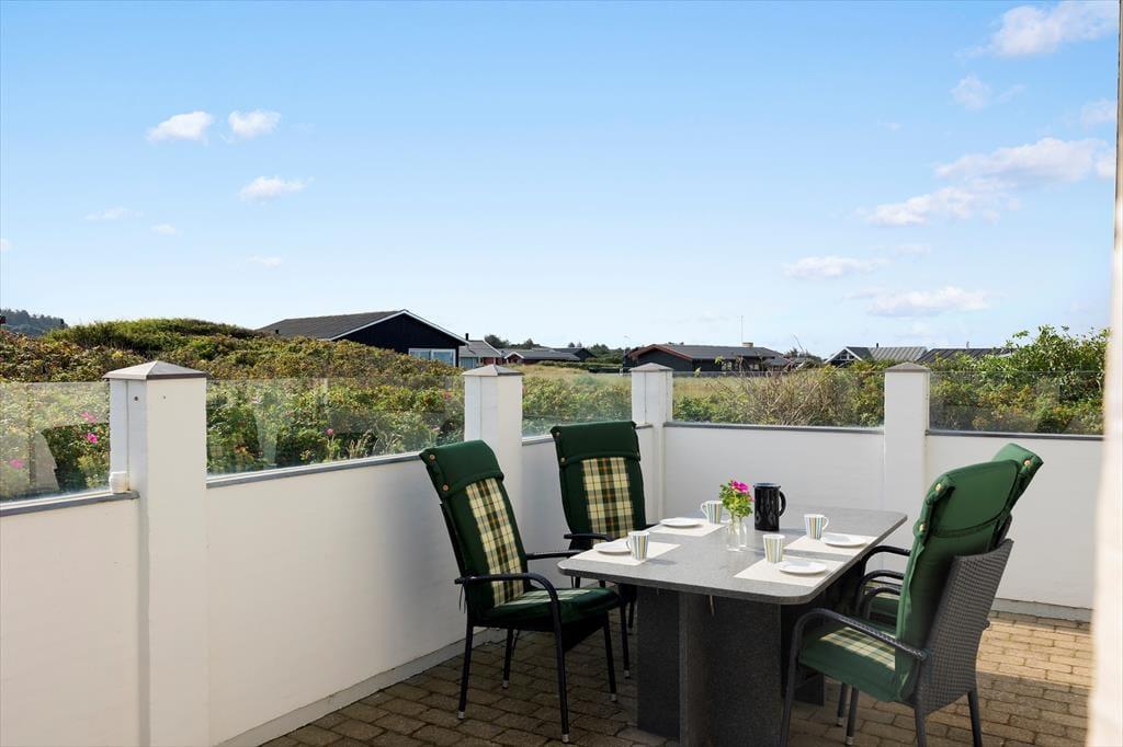 Udenfor finder du flere dejlige terrasser, hvor du kan slappe af og nyde solens varme eller finde skygge på de solrige dage. Der er både en sydvestvendt terrasse, der er perfekt til at spise måltider udendørs, og en østvendt terrasse, hvor du kan nyde morgenkaffen. Fra både stue og soveværelse har du direkte adgang til terrasserne, hvilket gør det nemt at gå ud og nyde den friske luft. Når du er klar til at udforske området, er det kun en kort gåtur til stranden, hvor du kan tage en dukkert i det friske vand eller gå lange ture langs den brede sandstrand.