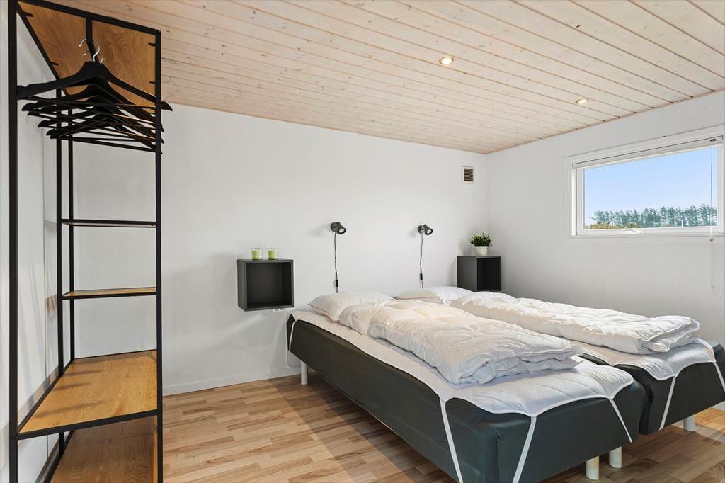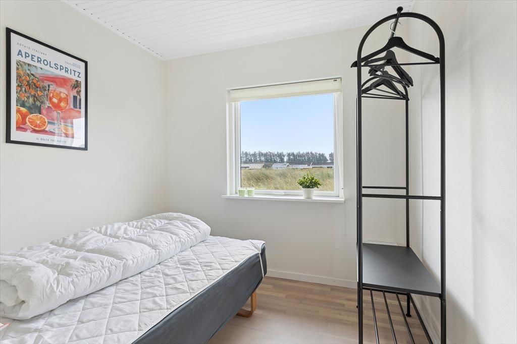 Sommerhus i Skallerup Klit, Nordjylland, med plads til 6 voksne og 2 husdyr. Der er en hyggelig indretning med bl.a. brændeovn, og du finder desuden vaskemaskine og opvaskemaskine i boligen.