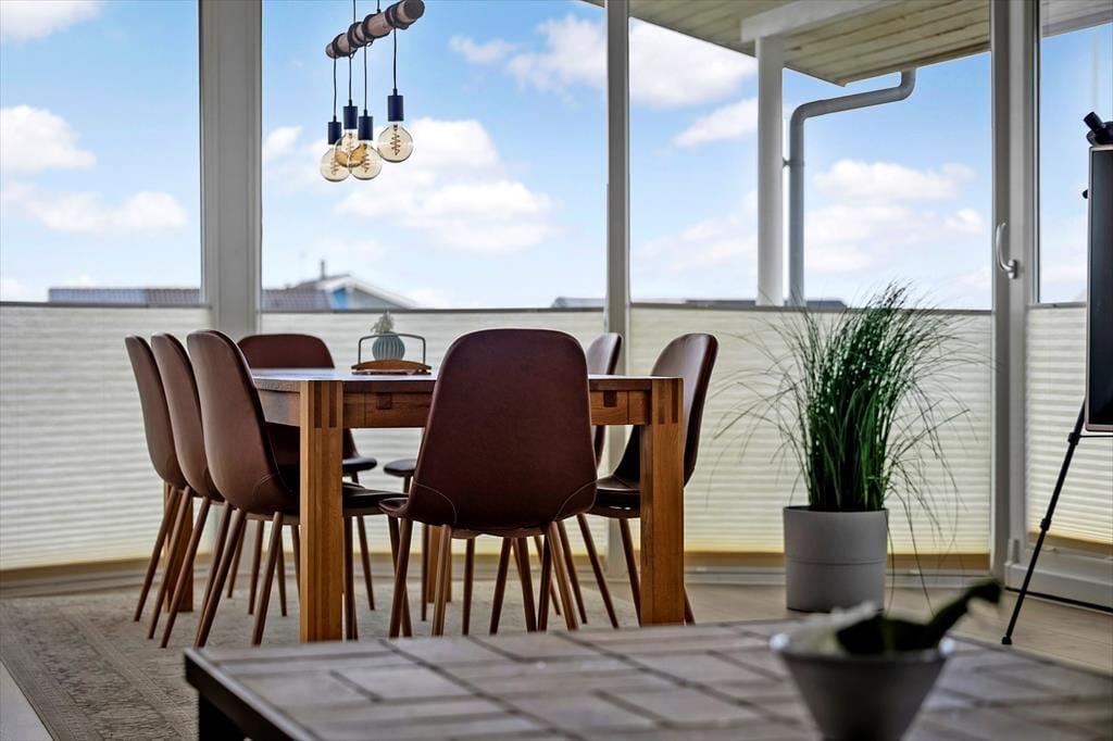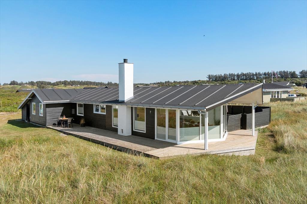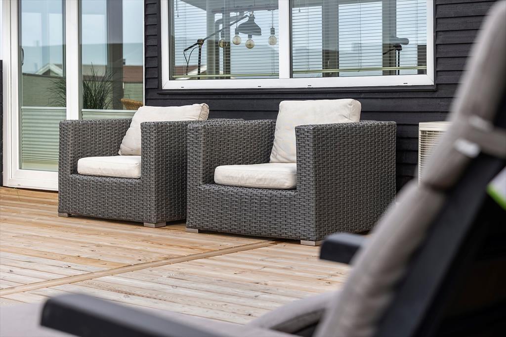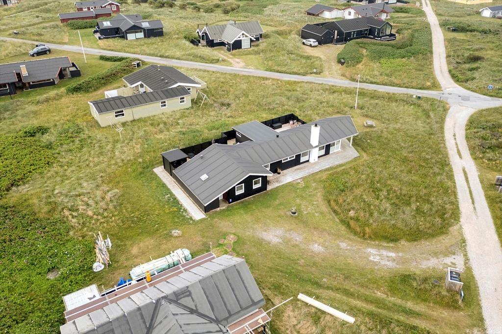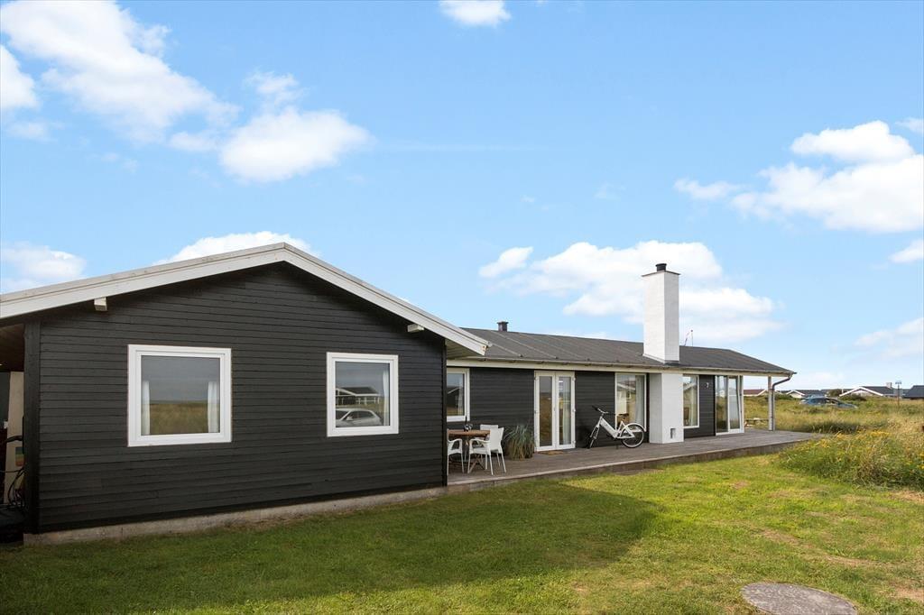 Udenfor på sommerhusets grund kan du virkelig mærke roen, der præger området. En stor terrasse indbyder til afslapning, hvor du kan nyde en god bog i solens varme stråler eller lade tankerne vandre med udsigt til den smukke natur omkring huset. Et af sommerhusets helt særlige træk er den udendørs sauna, som giver dig mulighed for at forkæle dig selv med en wellnessoplevelse under åben himmel – perfekt efter en forfriskende dag på stranden. Og netop stranden er tæt på: Du kan nemt gå ned og mærke sandet mellem tæerne eller tage en dukkert i Vesterhavet, der er lige rundt om hjørnet.