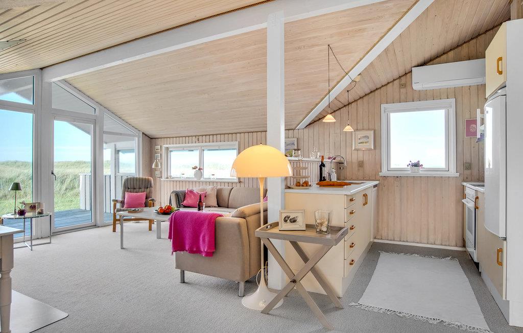 Dette vidunderlige sommerhus byder velkommen til op til fire gæster. Det består af to soveværelser, et badeværelse, en stor stue og en spisestue med køkken. Gennem de store vinduer i stuen kan I nyde en vidunderlig udsigt over klitterne. På terrassen kan I spise morgenmad og senere afslutte dagen med et glas vin, mens I nyder den friske havluft og den vidunderlige udsigt. På kolde vinteraftener kan I slappe af foran brændeovnen i stuen.