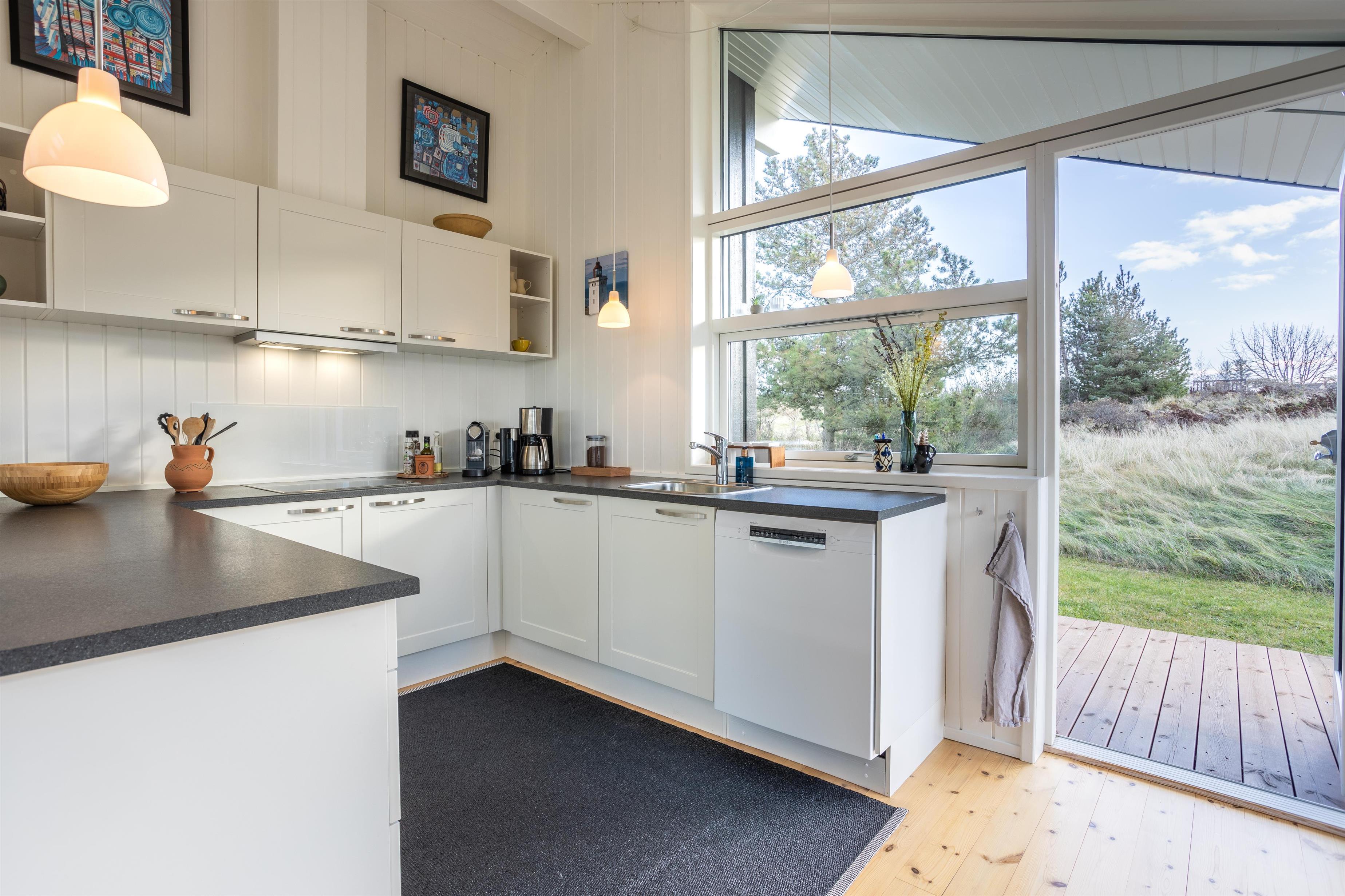 Tag en dyb indånding og lad roen sækne sig. I dette feriehus er I i ét med naturen, som omkranser hele huset. Huset er beliggende på en dejlig stor og ugeneret naturgrund, og lige meget hvor I kigger hen, ser I ud på naturen og fra stue og køkken, er der den skønneste udsigt til det brusende Vesterhav. Under jeres ophold vil der være rig mulighed for at møde både fasaner og rådyr, som er på opdagelse på den store naturgrund. Fra Feriehuset er der kun en kort gåtur til vandet samt Skallerup Seaside Resort via stier.