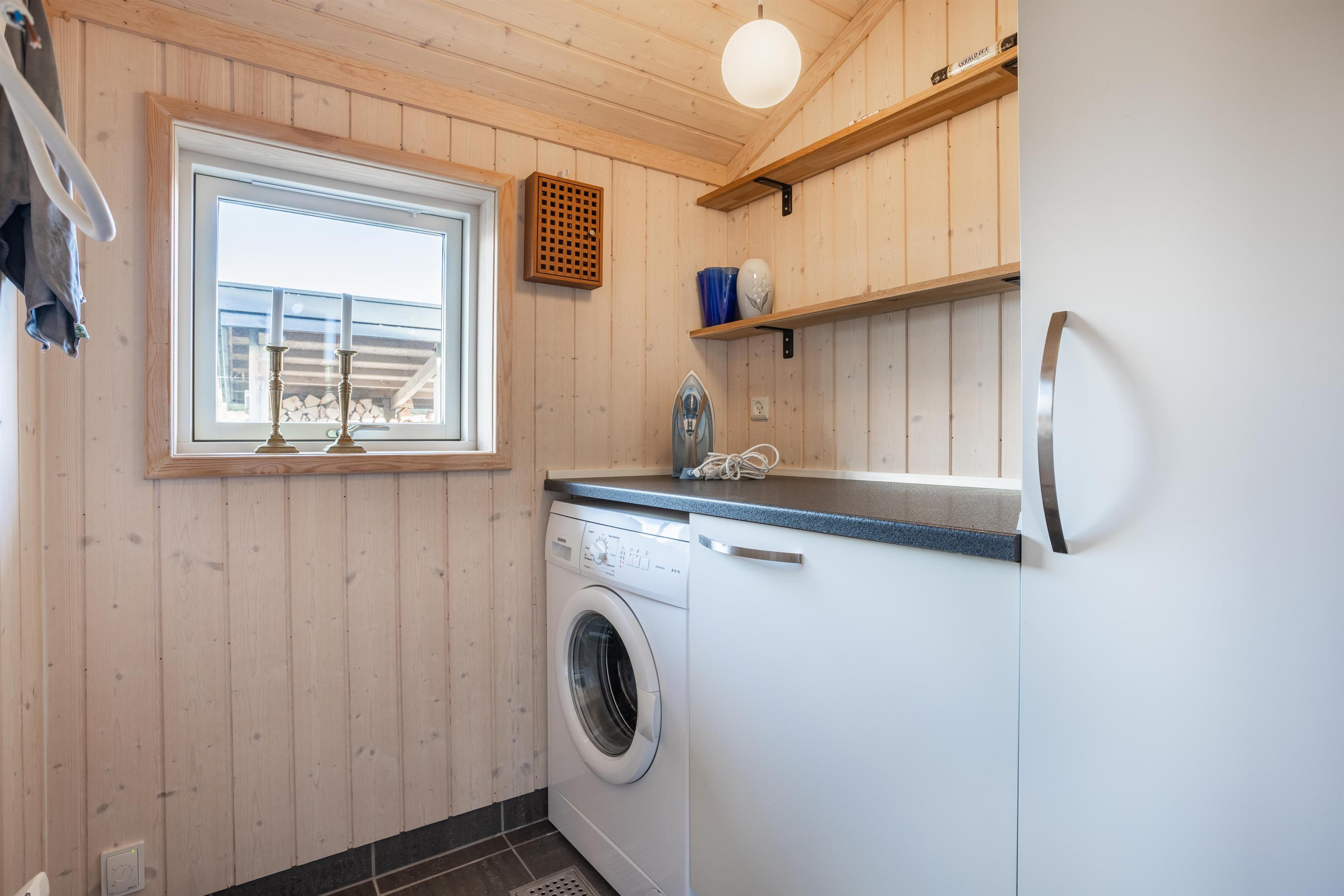 Feriehuset har tre komfortable soveværelser med dobbeltsenge i hvert rum samt et stort badeværelse med badekar og et praktisk bryggers med vaskemaskine. Huset er energivenligt og opvarmes med en varmepumpe. Der er også en ladestander til elbiler (Type2-stik, som forefindes på stedet), som gør det nemt for elbilister at oplade bilen direkte ved huset.