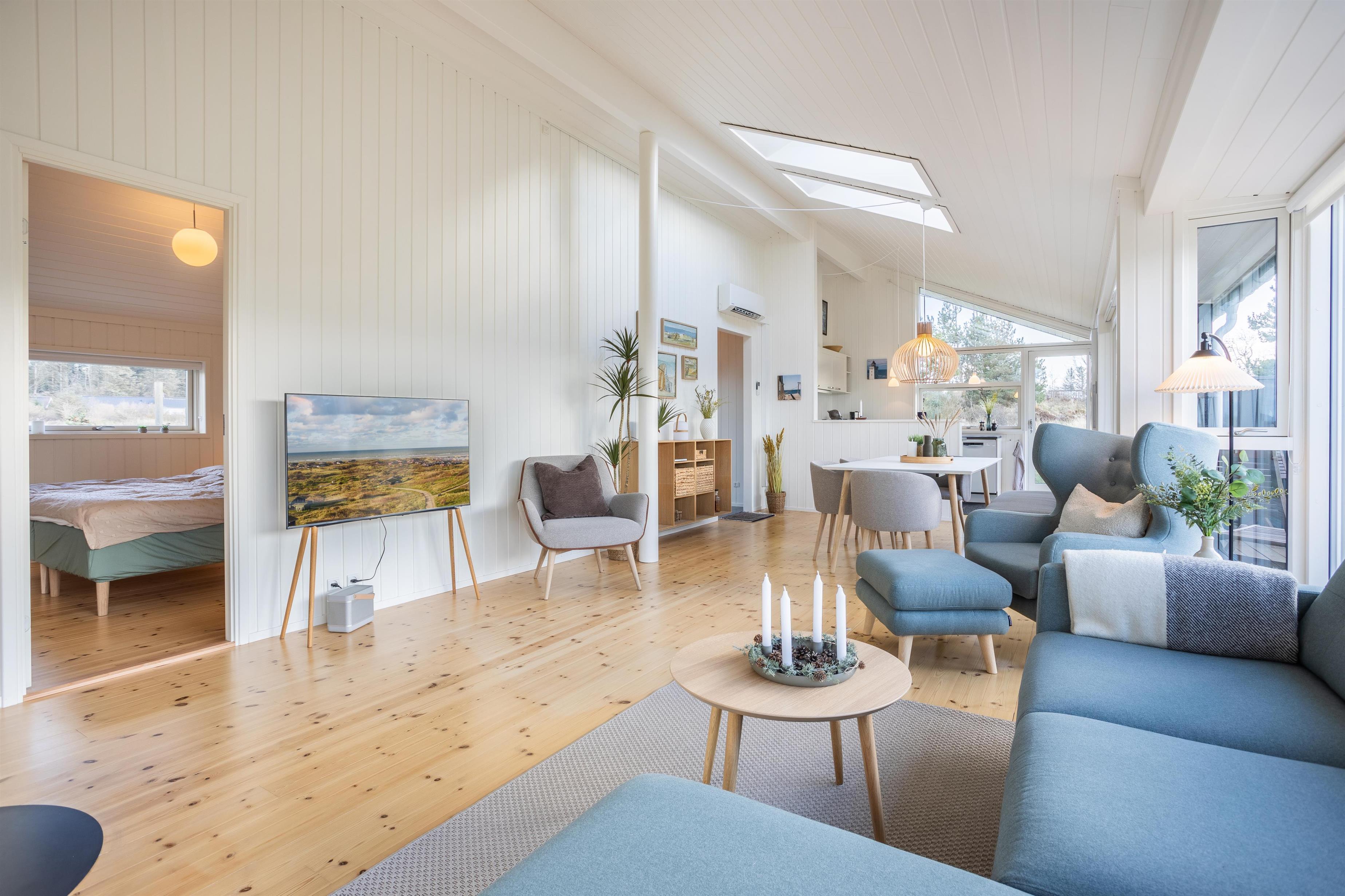 Book jeres ophold i dette charmerende sommerhus og oplev en ferie, hvor komfort, natur og havudsigt går op i en højere enhed. Nyd et afslappende ophold i Skallerup Klits unikke landskab!