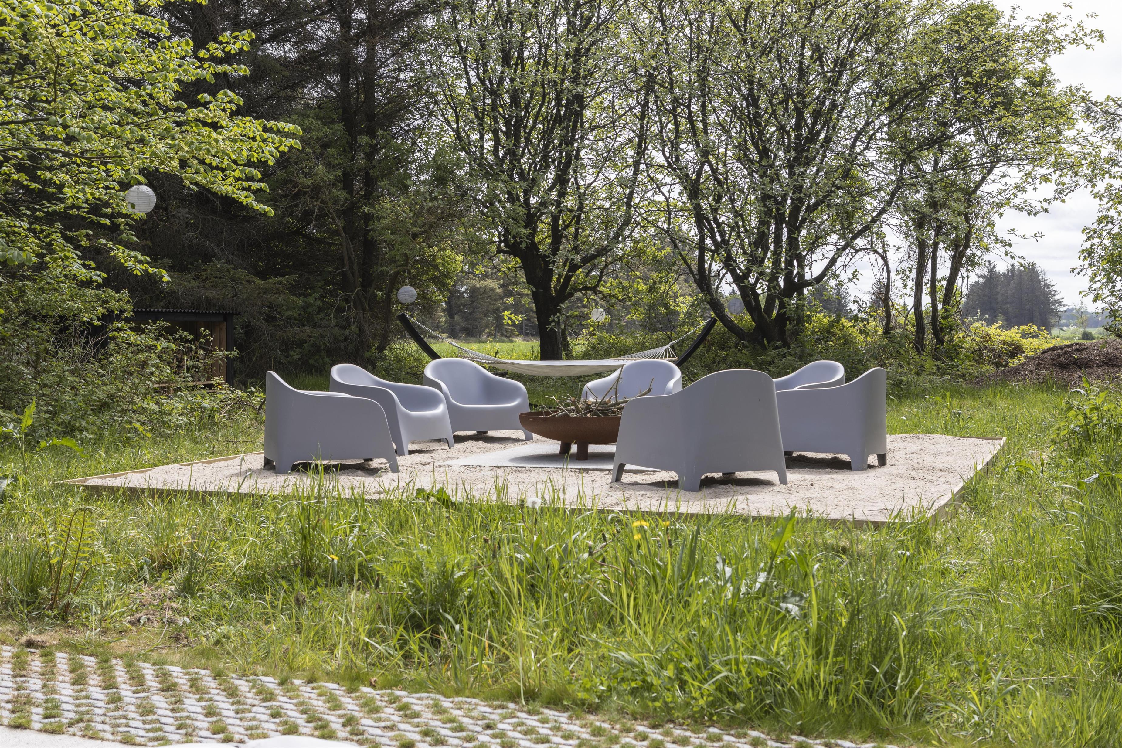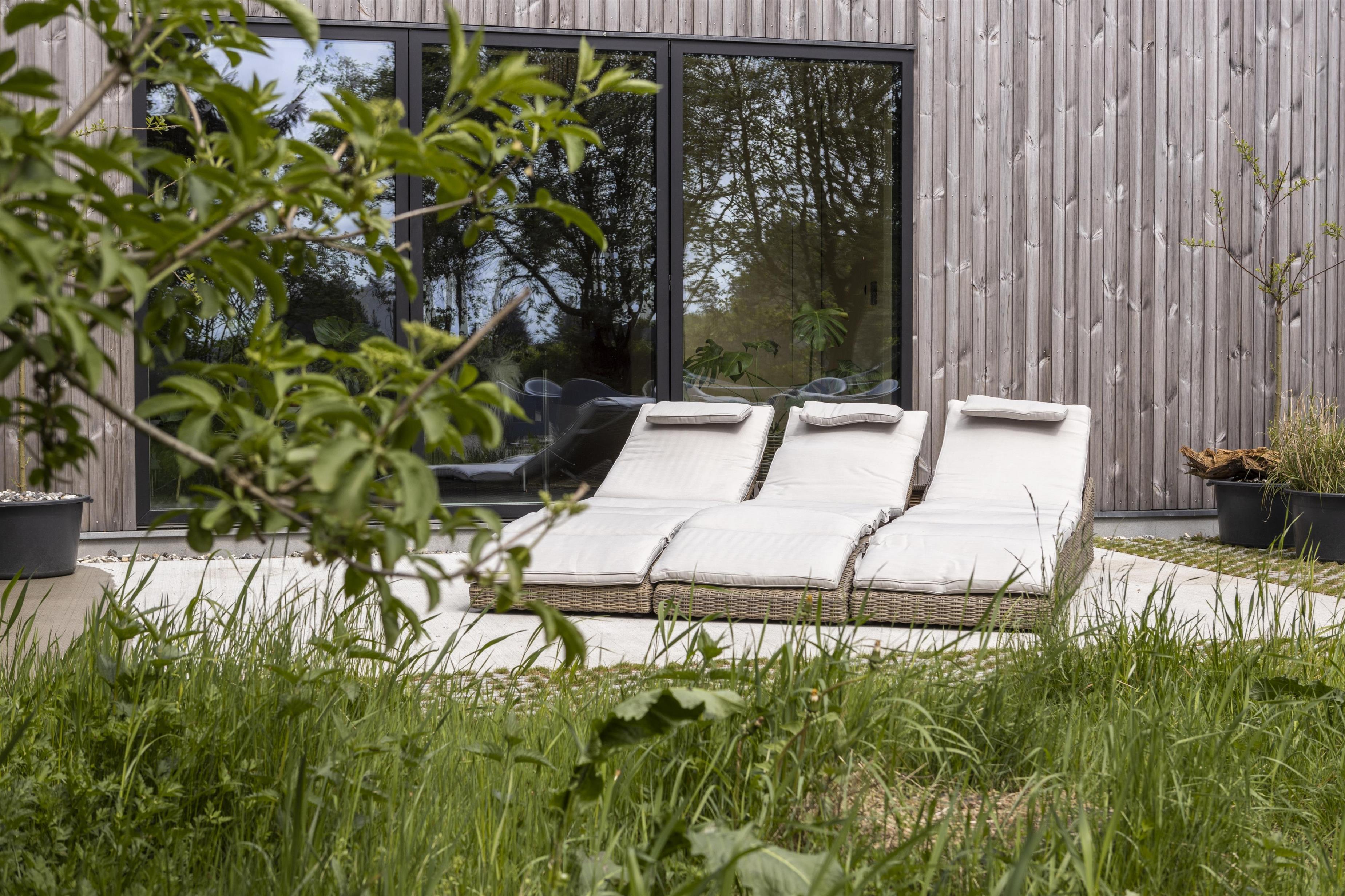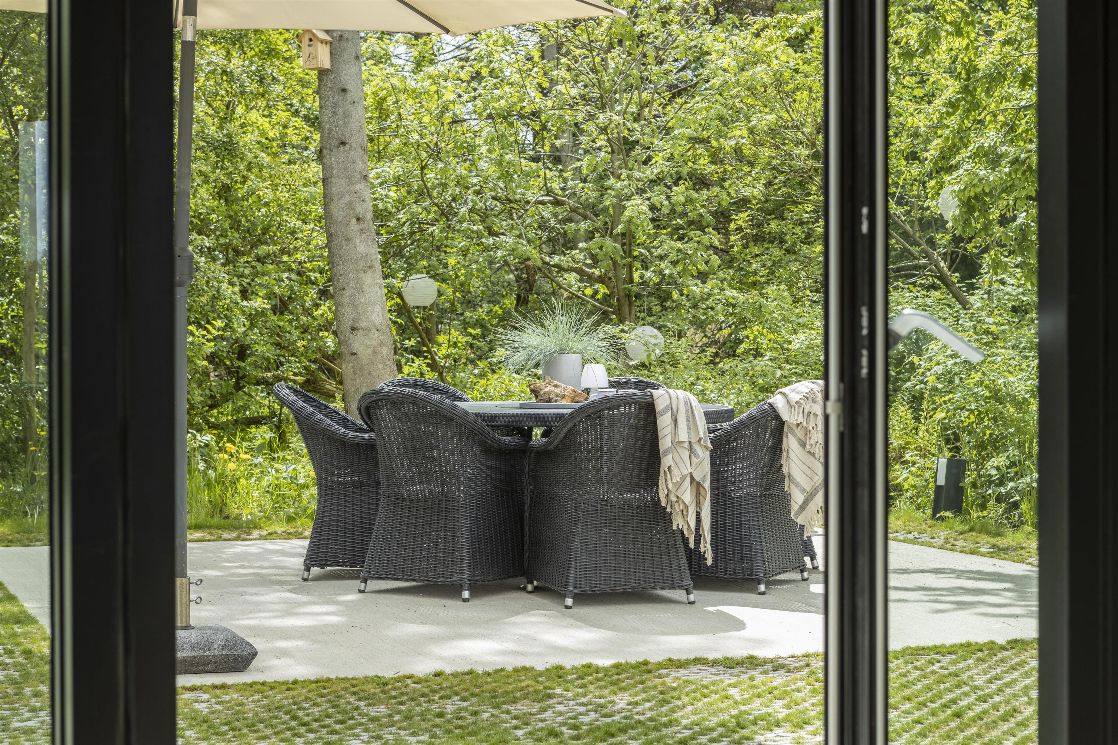 Fra begge stuer er der direkte udgang til en stor, privat terrasse, hvor I kan nyde roen og naturen. Her er der flere steder at slå sig ned og nyde den friske luft. Nyd en lækker grillaften på terrassen, lav et bål og rist skumfiduser eller læg jer til rette i liggestolene og nyd solen. På terrassen er der direkte adgang til vildmarksbadet og saunaen, og herfra kan I lade tankerne flyde, mens I fordyber jer i udsigten og nyder hinandens selskab.