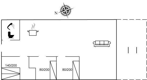Der er i alt 3 soveværelser. Sovepladserne fordeler sig på: 2 sovepladser i dobbeltseng. 2 sovepladser i enkeltsenge.