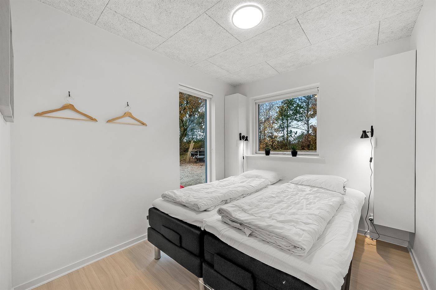 Der er i alt 3 soveværelser. Sovepladserne fordeler sig på: 2 sovepladser i dobbeltseng. 1 soveplads i enkeltseng. 3 sovepladser i køjesenge.2 sovepladser i elevationssenge.