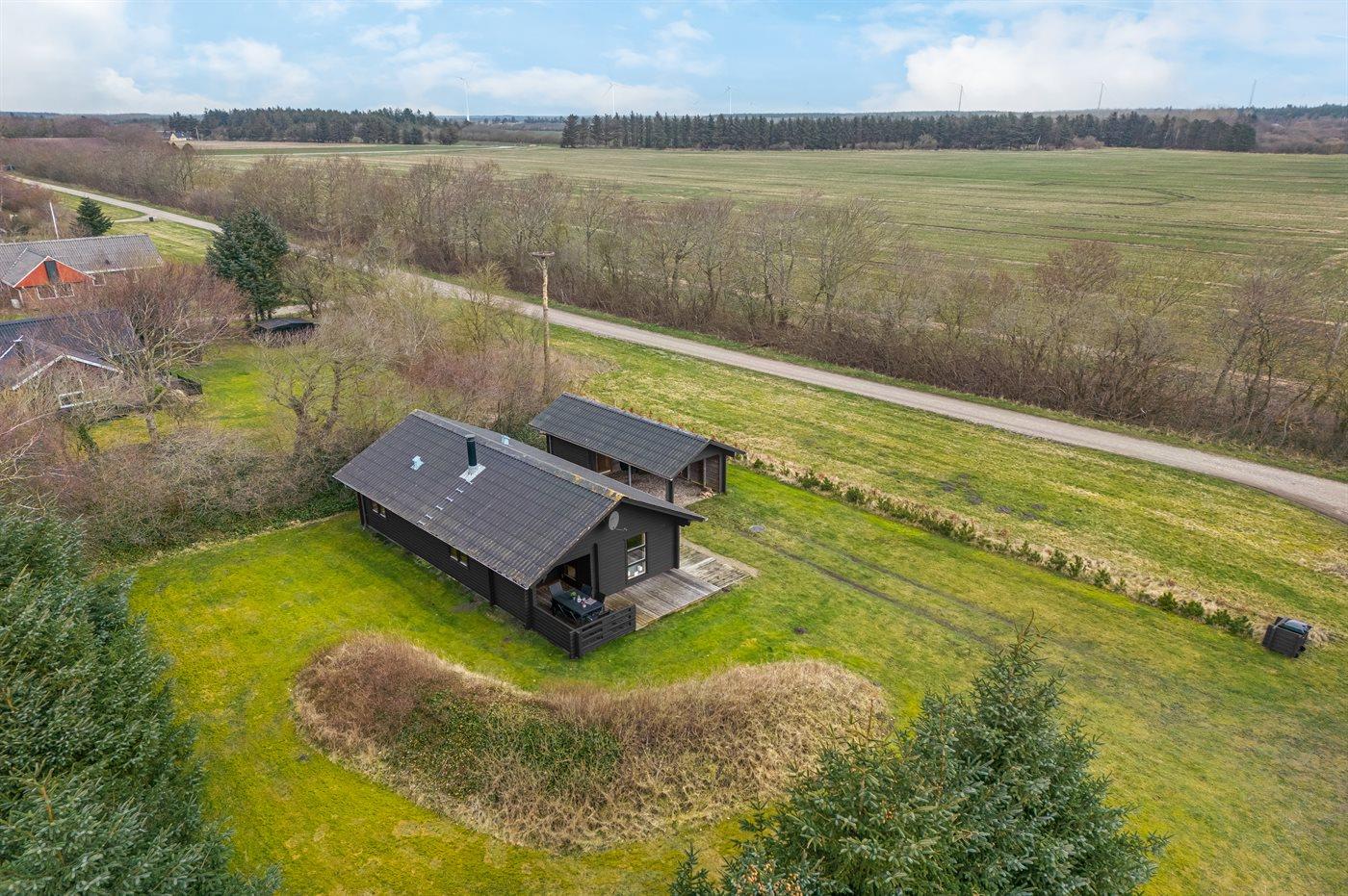 Hyggeligt bjælkehus med fjordudsigt, terrasse og fredeligt naturområde i Vemb.
