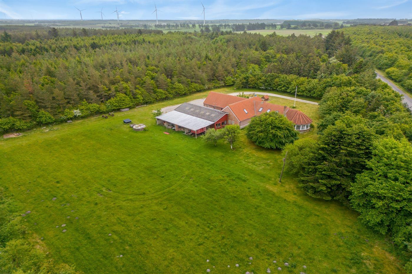 Ferieboligen er beliggende på en 900000 m² stor grund i skov/plantage. Der er 1000 m til fjorden. Nærmeste forretning er beliggende i en afstand af 1500 m. Til ferieboligen hører 50 m² terrasseareal. Der er redskabsrum. Gynge. Sandkasse. Legehus. Der er garage til rådighed. (Dobbelt).