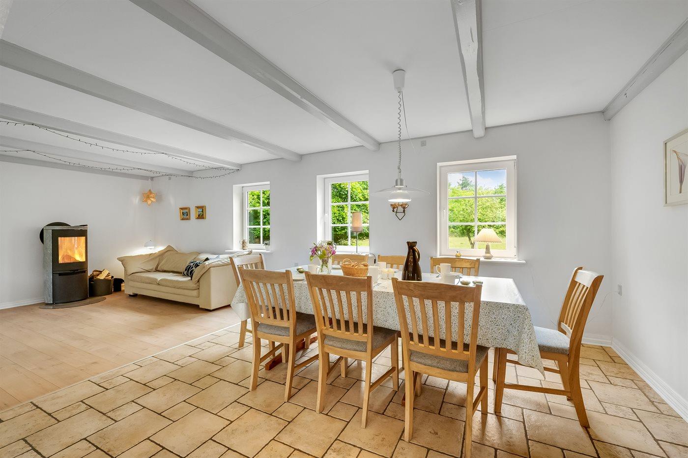 På en meget stor grund ligger denne flot renoverede og særdeles velholdte feriebolig. Her er der virkelig tale om et hus, hvor der er plads til alle og hvor der er rig mulighed for at nyde naturen.