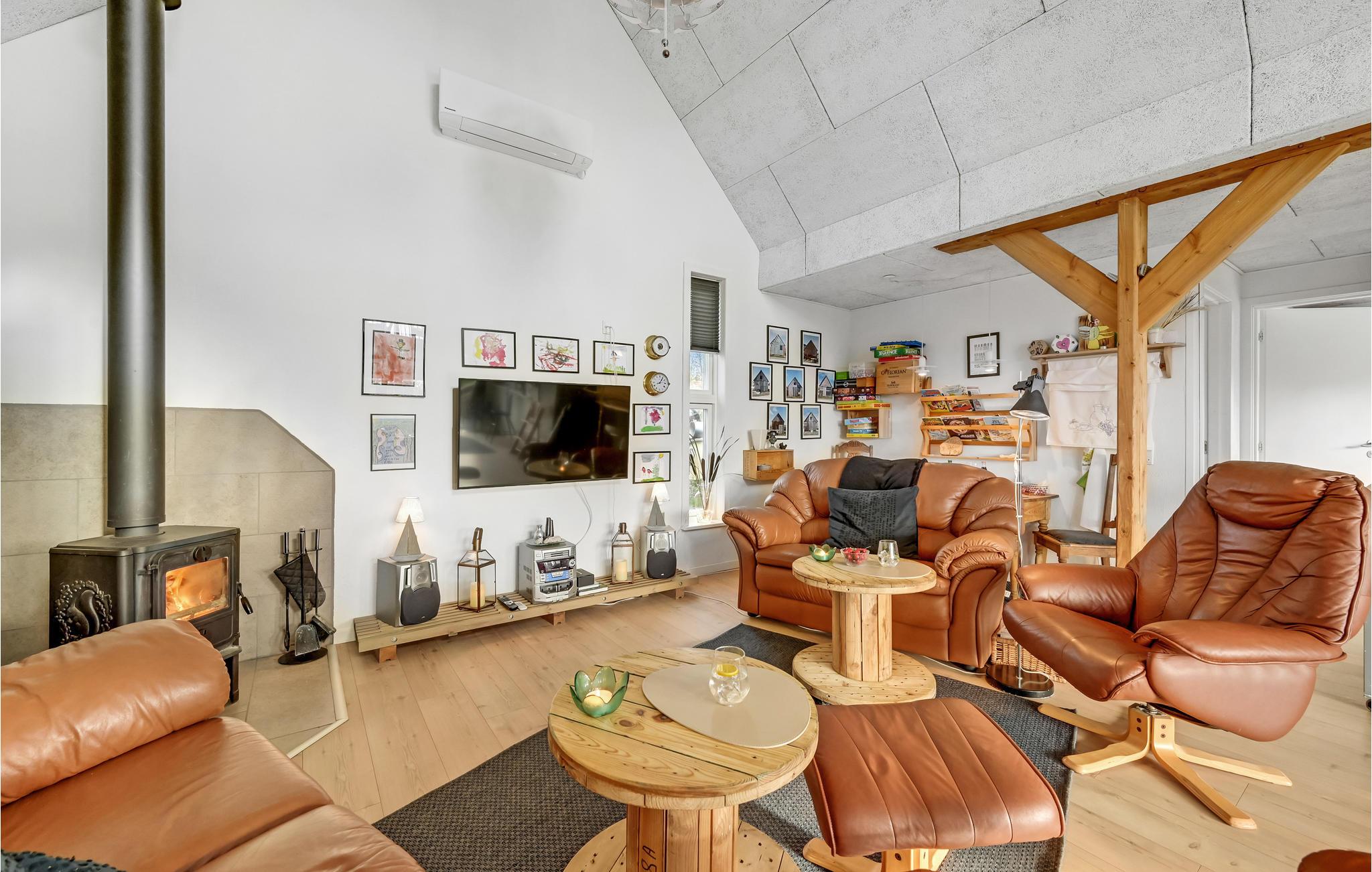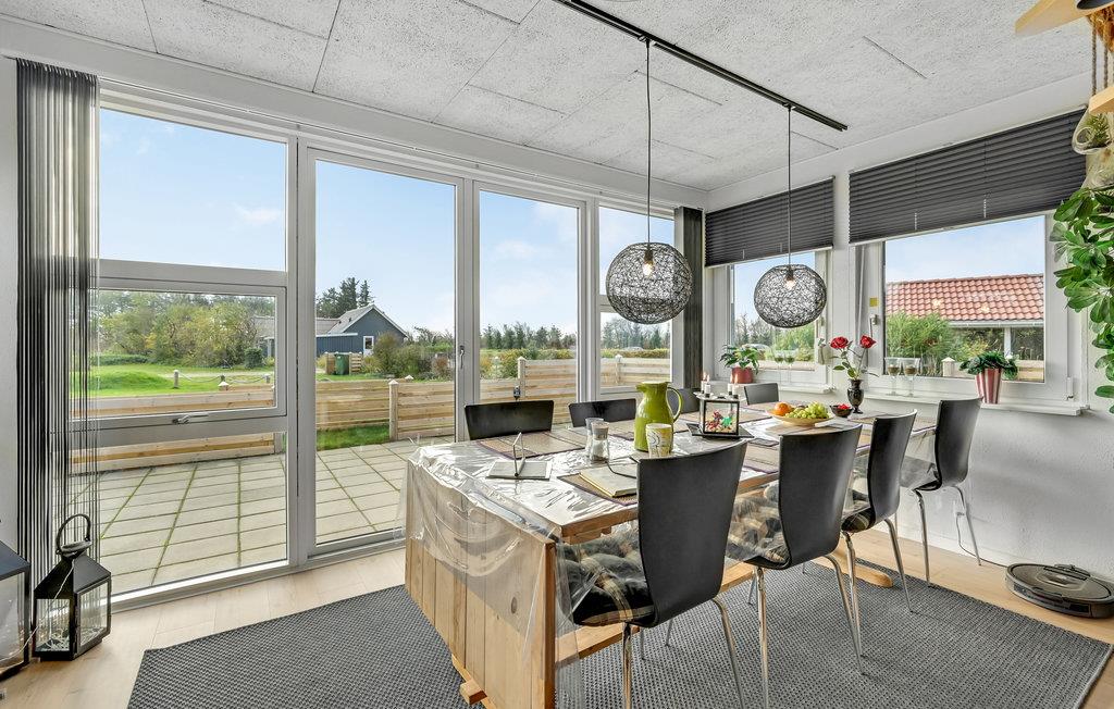 Dette rummelige sommerhus er så smagfuldt og komfortabelt indrettet, at I får svært at forlade det. Lyset strømmer ind gennem de store vinduespartier, og man kan se den nærliggende Nissum Fjord fra den møblerede hems. Åbent til kip gør huset meget rummeligt. På kølige dage kan I se film eller læse en spændende bog, mens flammerne knitrer i brændeovnen i baggrunden (brænde er tilgængeligt gratis). Det er en fornøjelse at tilberede lækre feriemåltider i det veludstyrede køkken og derefter samles ved den lyse spiseplads.