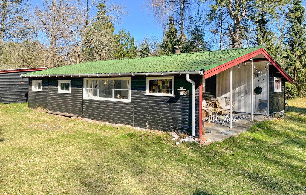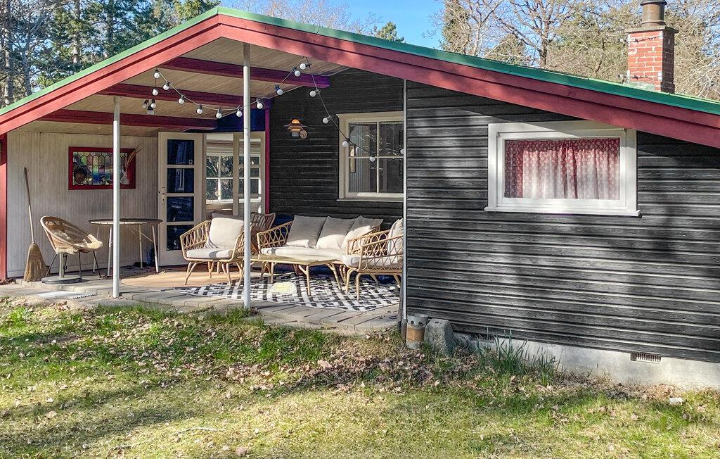 Charmerende feriehus ved Skansebugten Strand med naturhave, brændeovn og overdækket terrasse.